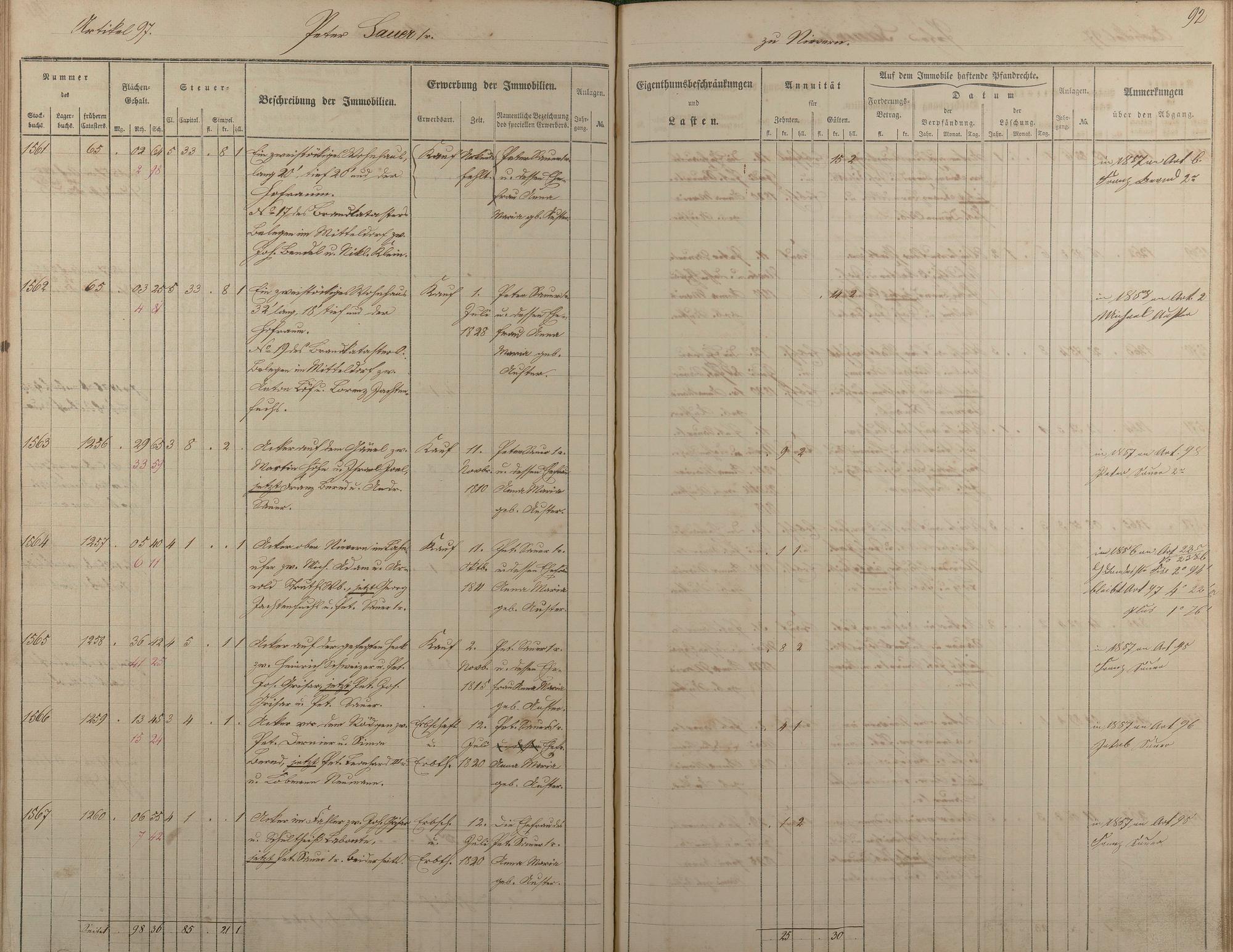 1/2: Stockbuch der Gemeinde Nievern 1854-1861