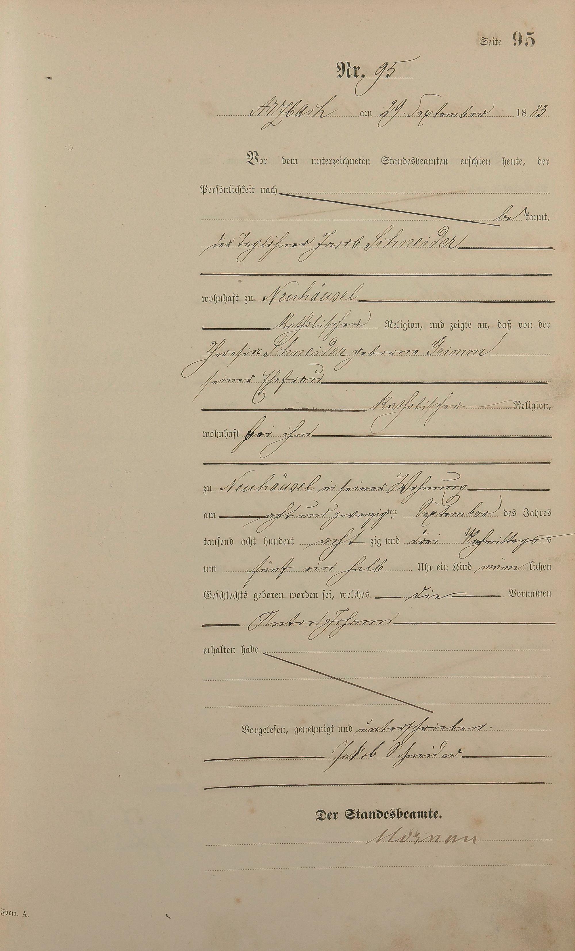 Geburtsregister 1883