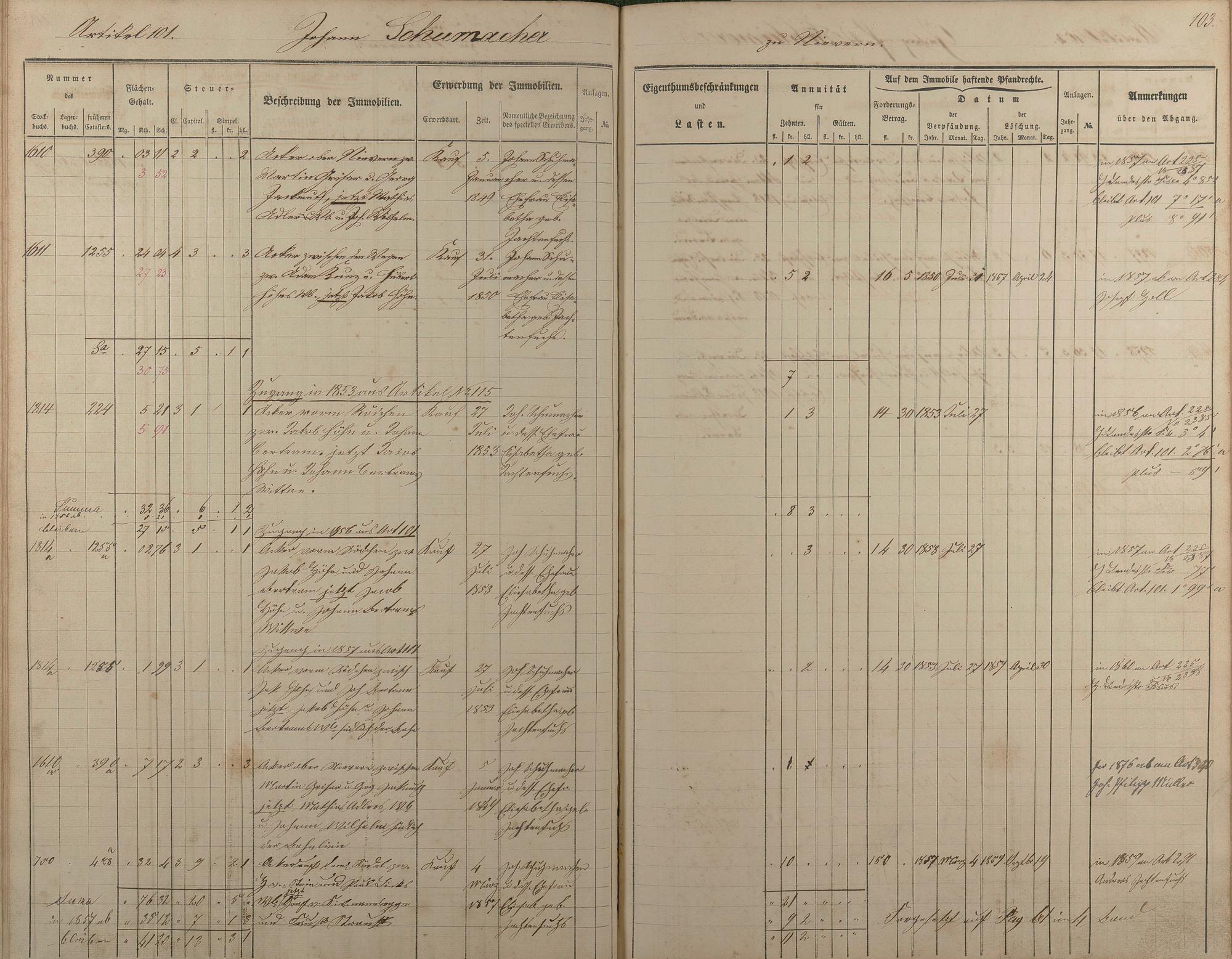 1/2: Stockbuch der Gemeinde Nievern 1854-1861