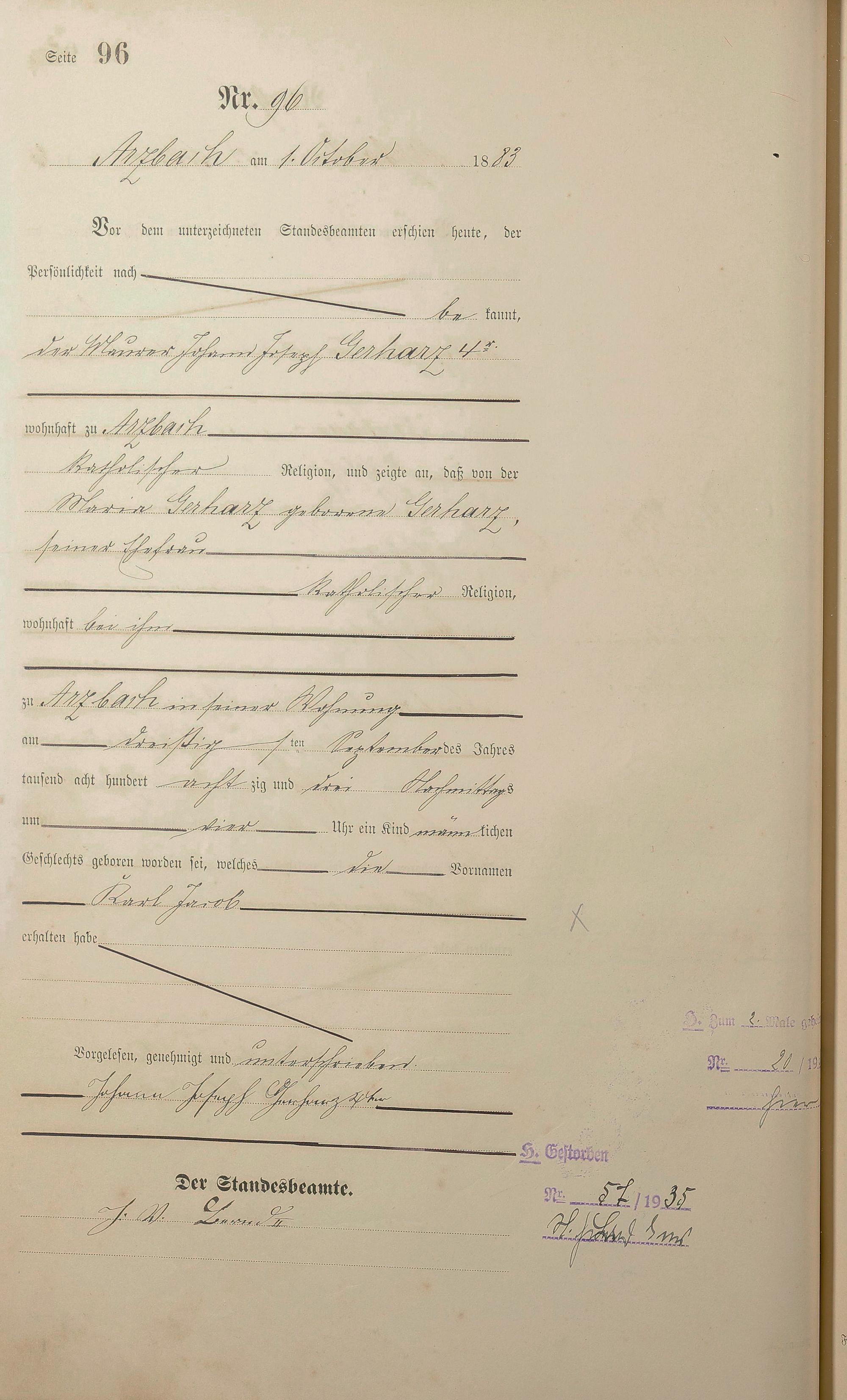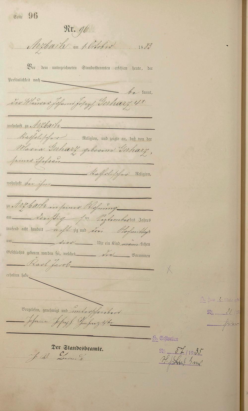 Geburtsregister 1883