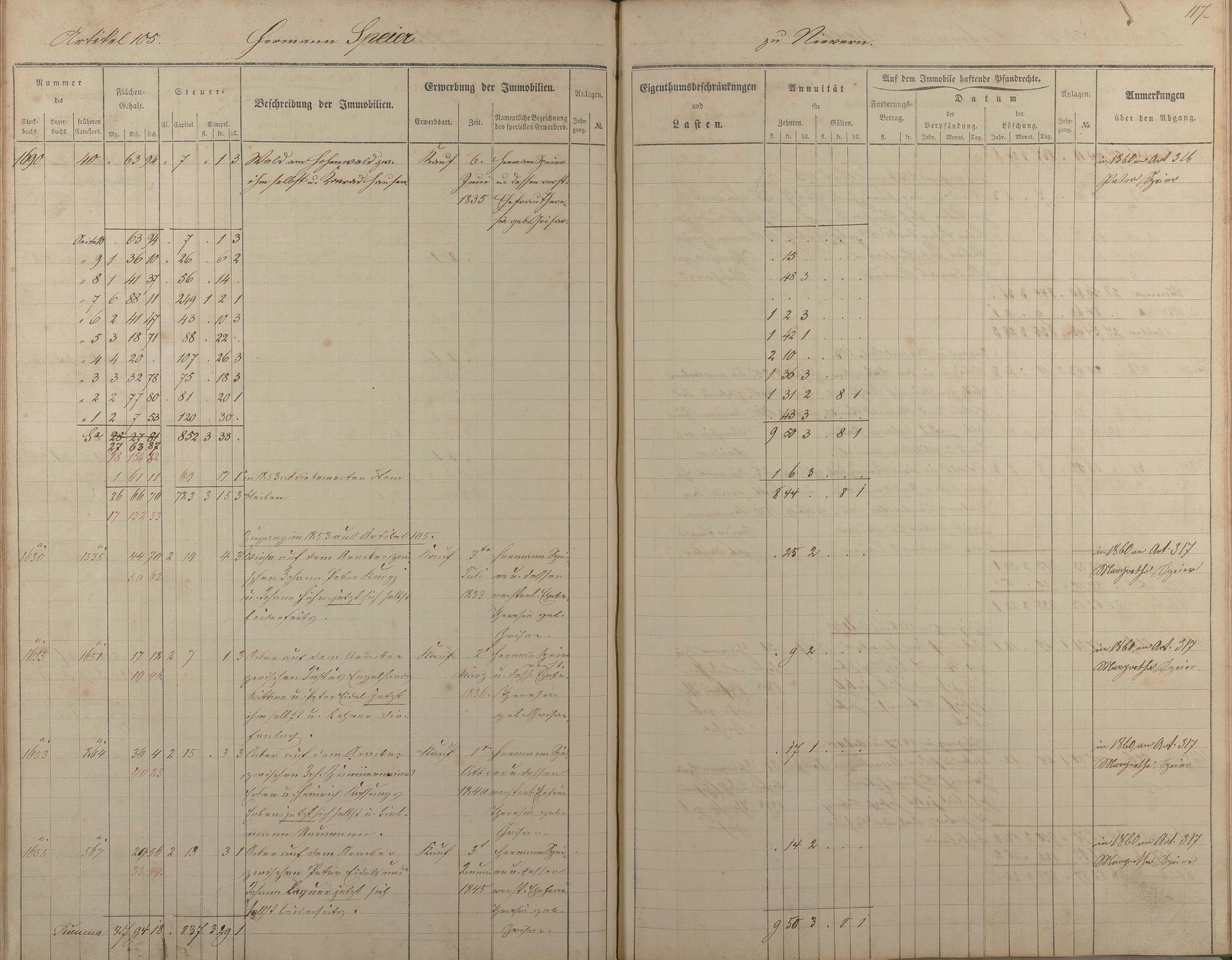 1/2: Stockbuch der Gemeinde Nievern 1854-1861
