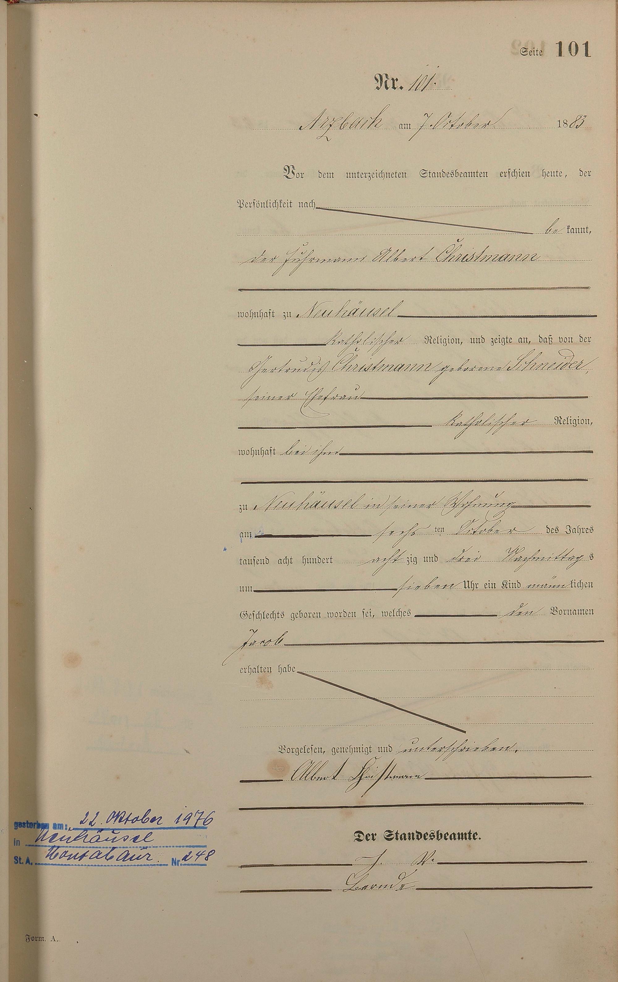 Geburtsregister 1883