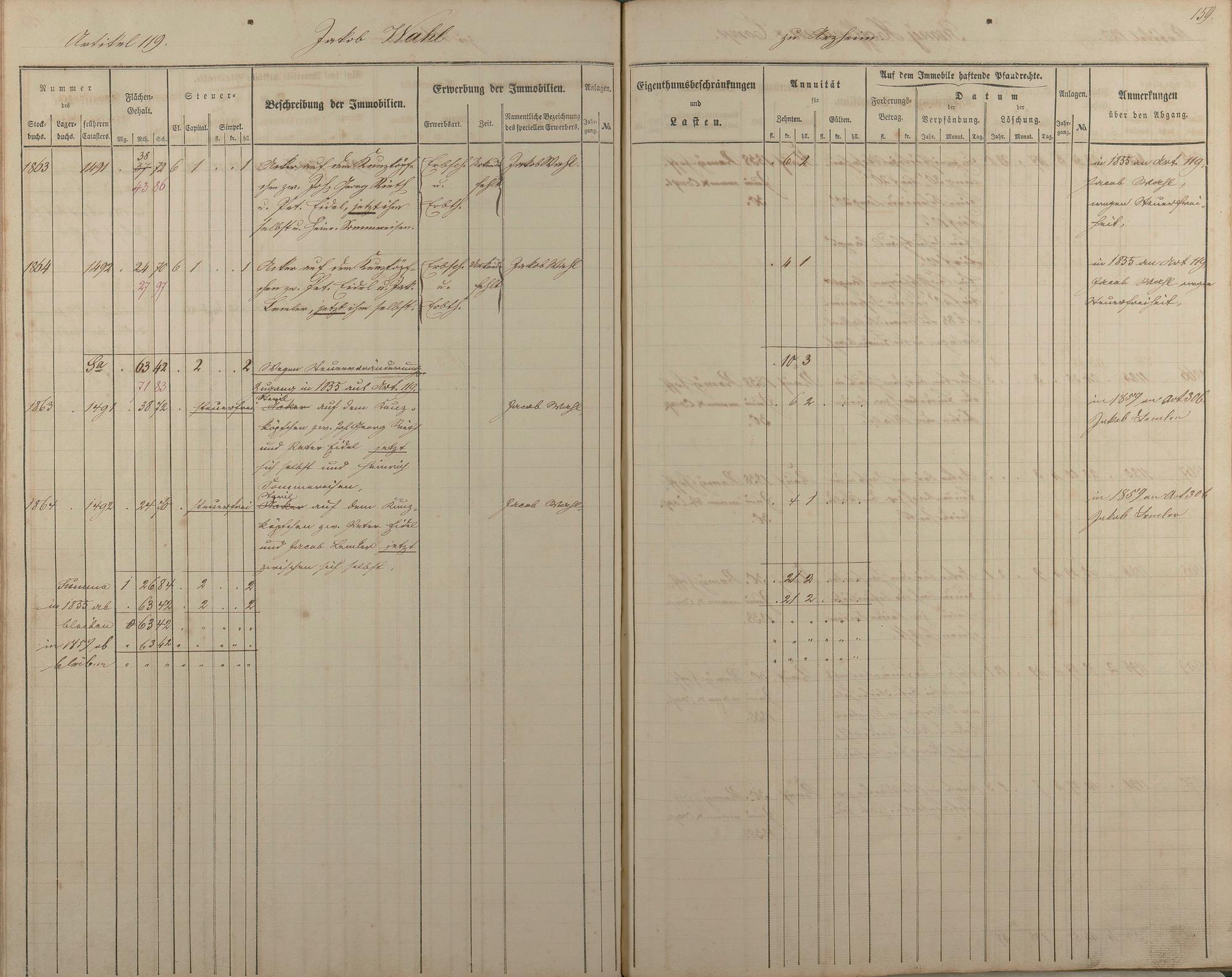 1/2: Stockbuch der Gemeinde Nievern 1854-1861