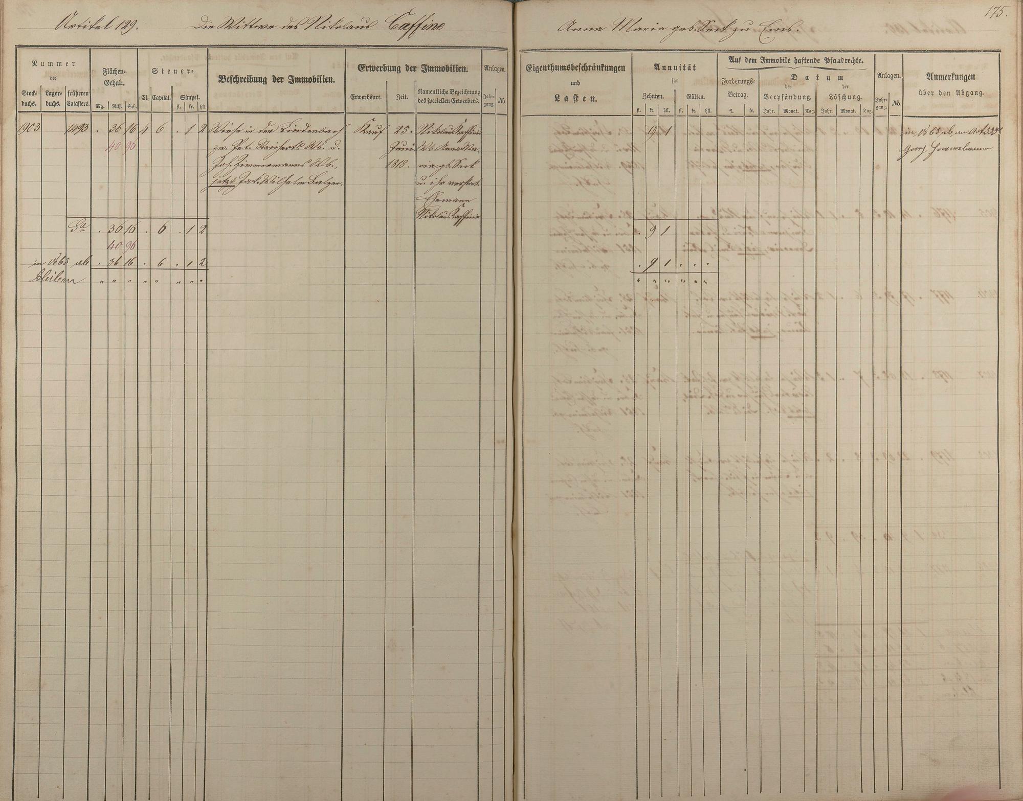 1/2: Stockbuch der Gemeinde Nievern 1854-1861