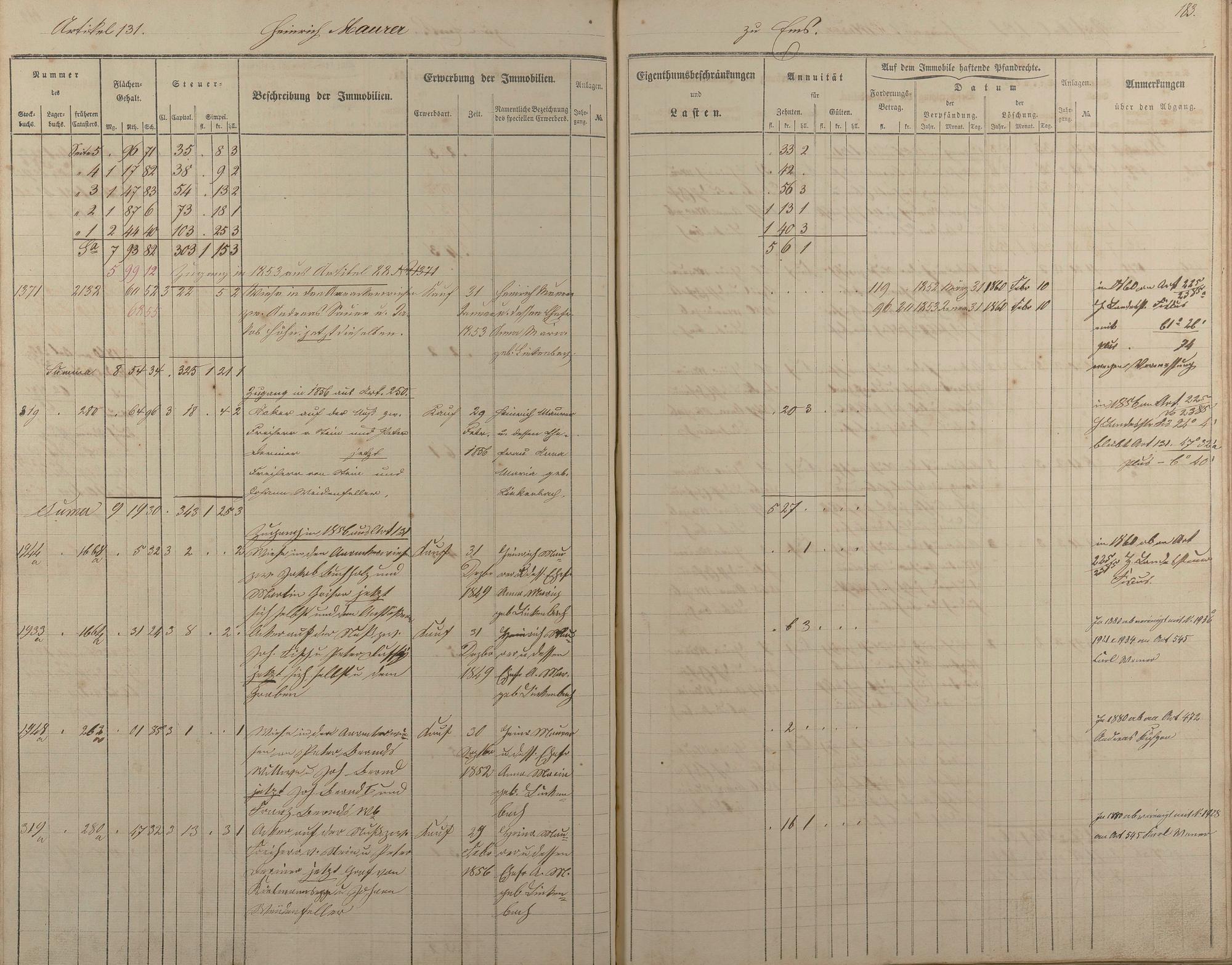 1/2: Stockbuch der Gemeinde Nievern 1854-1861