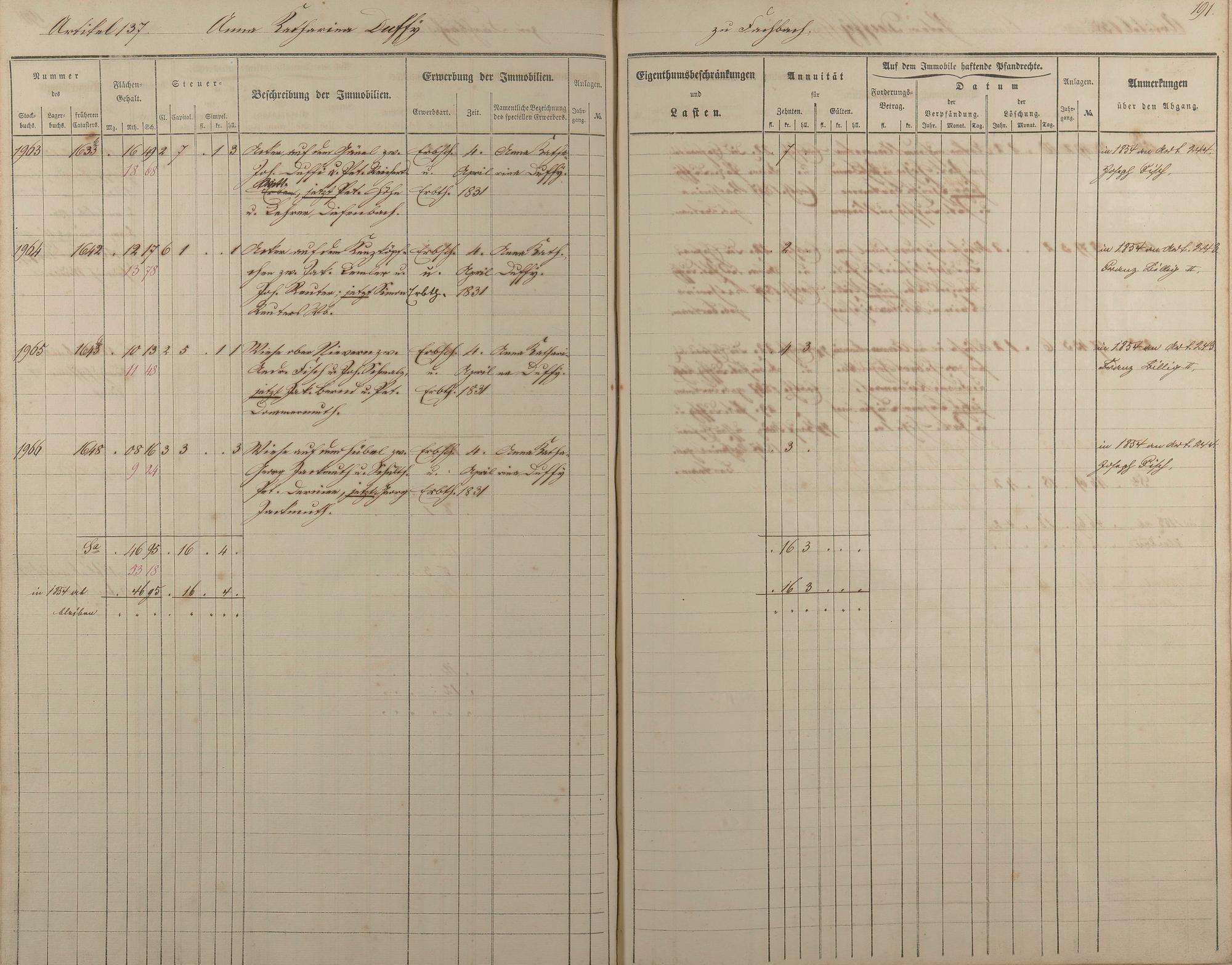1/2: Stockbuch der Gemeinde Nievern 1854-1861