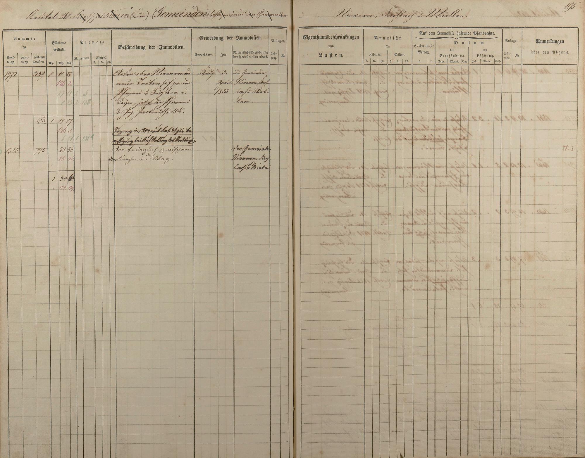 1/2: Stockbuch der Gemeinde Nievern 1854-1861