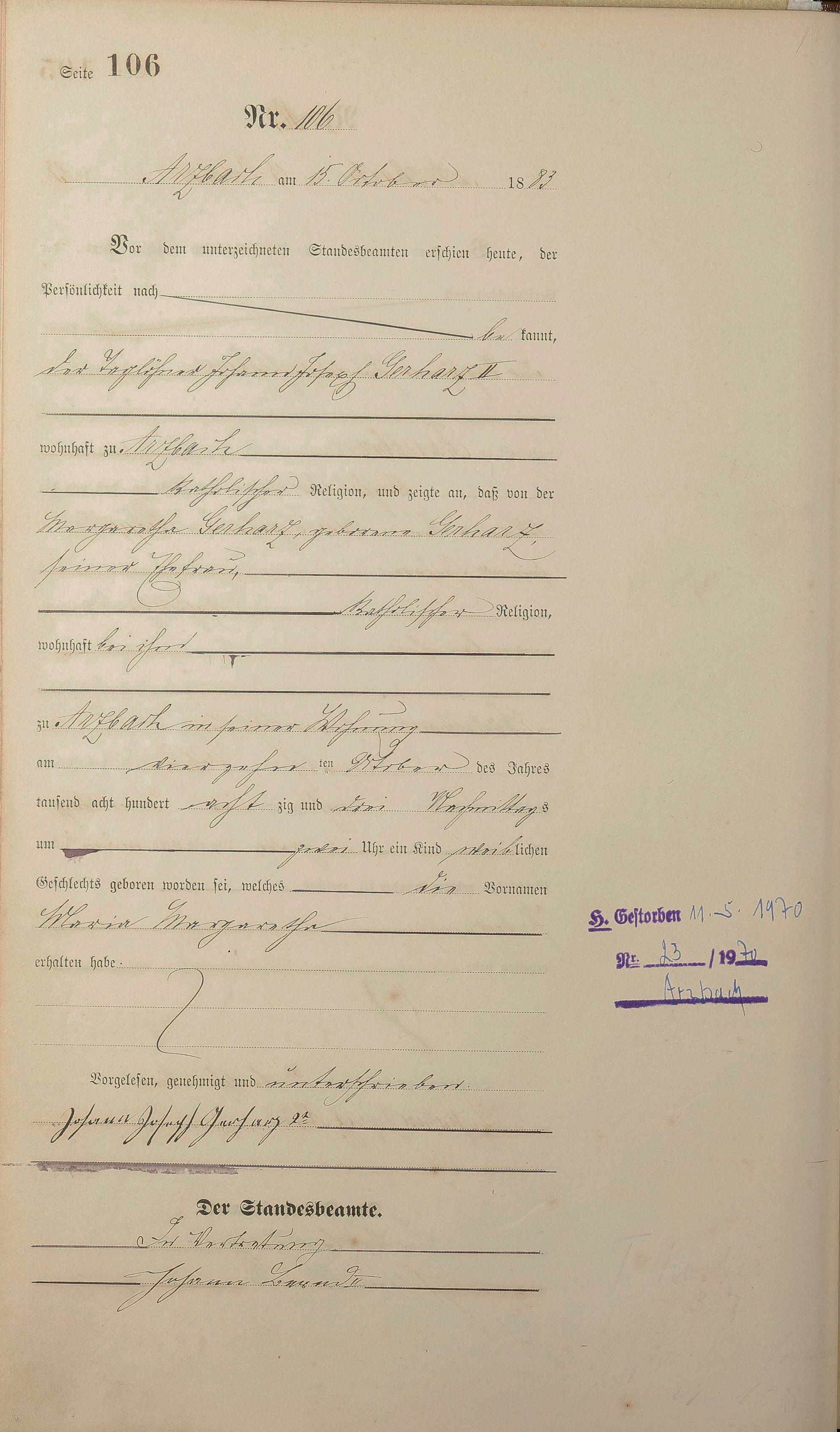 Geburtsregister 1883
