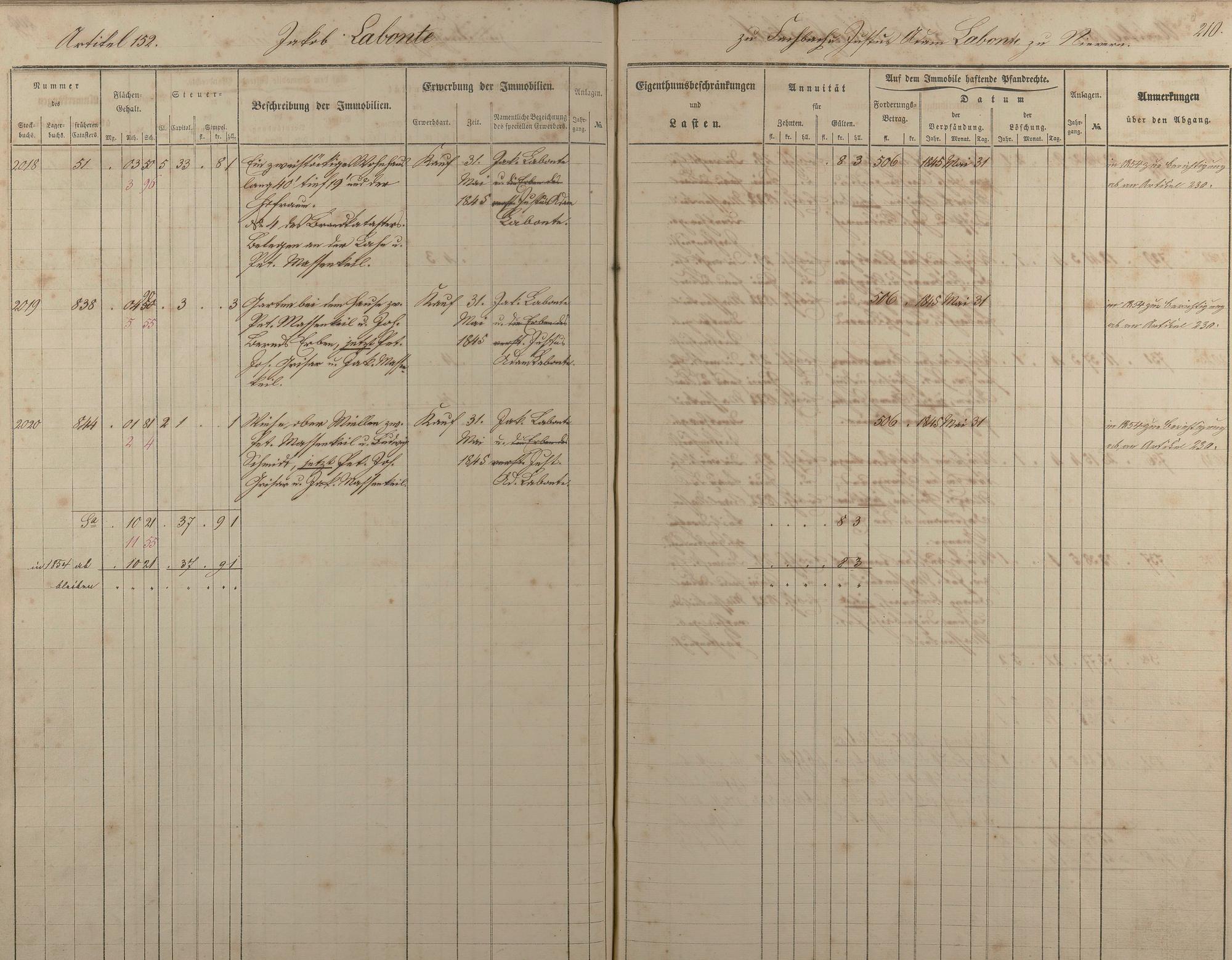 1/2: Stockbuch der Gemeinde Nievern 1854-1861