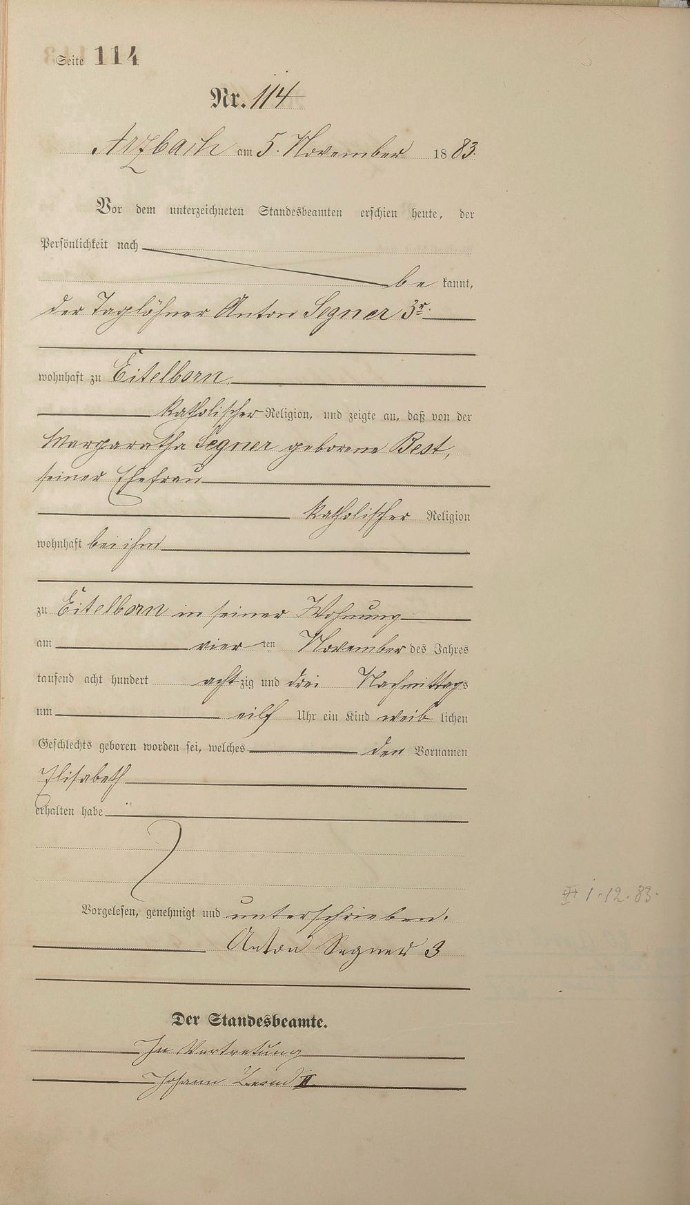 Geburtsregister 1883