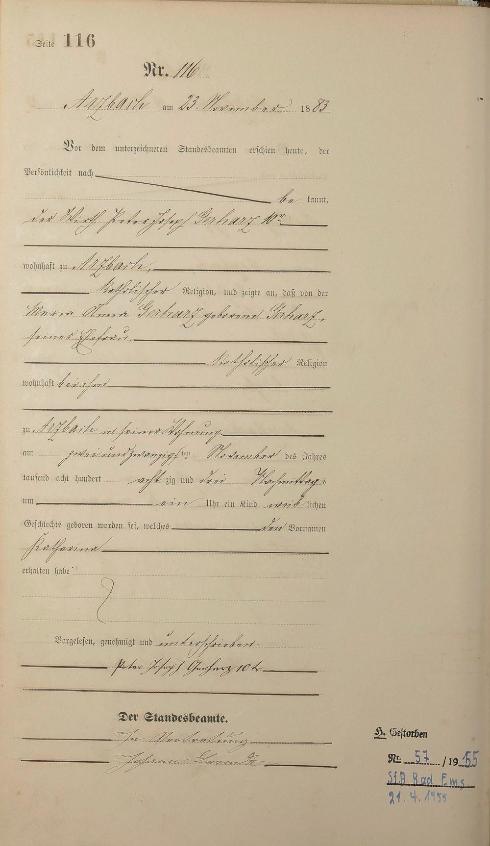 Geburtsregister 1883