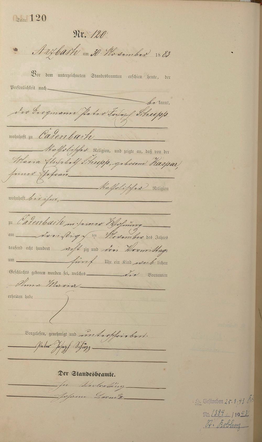 Geburtsregister 1883
