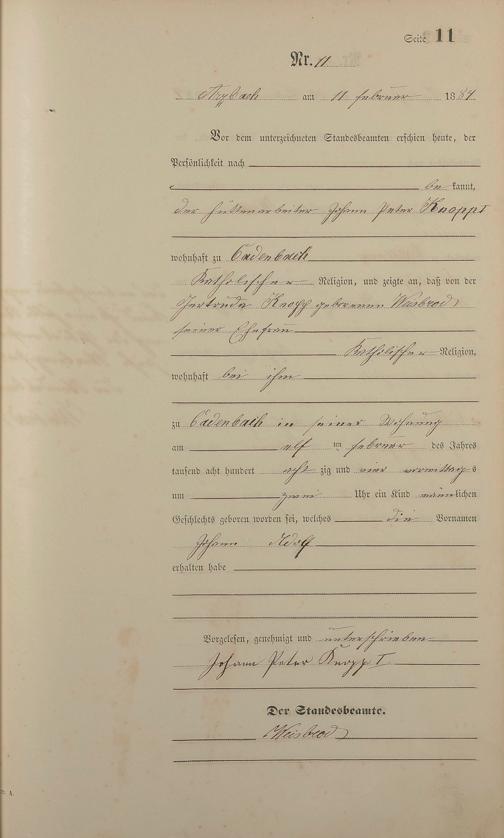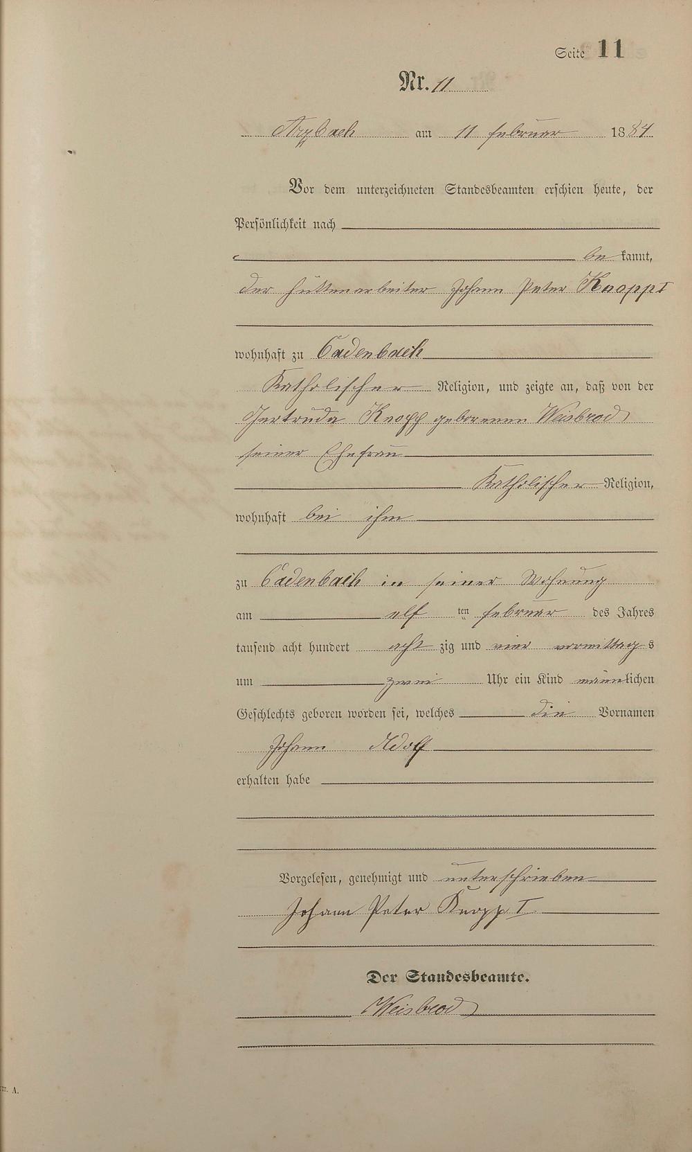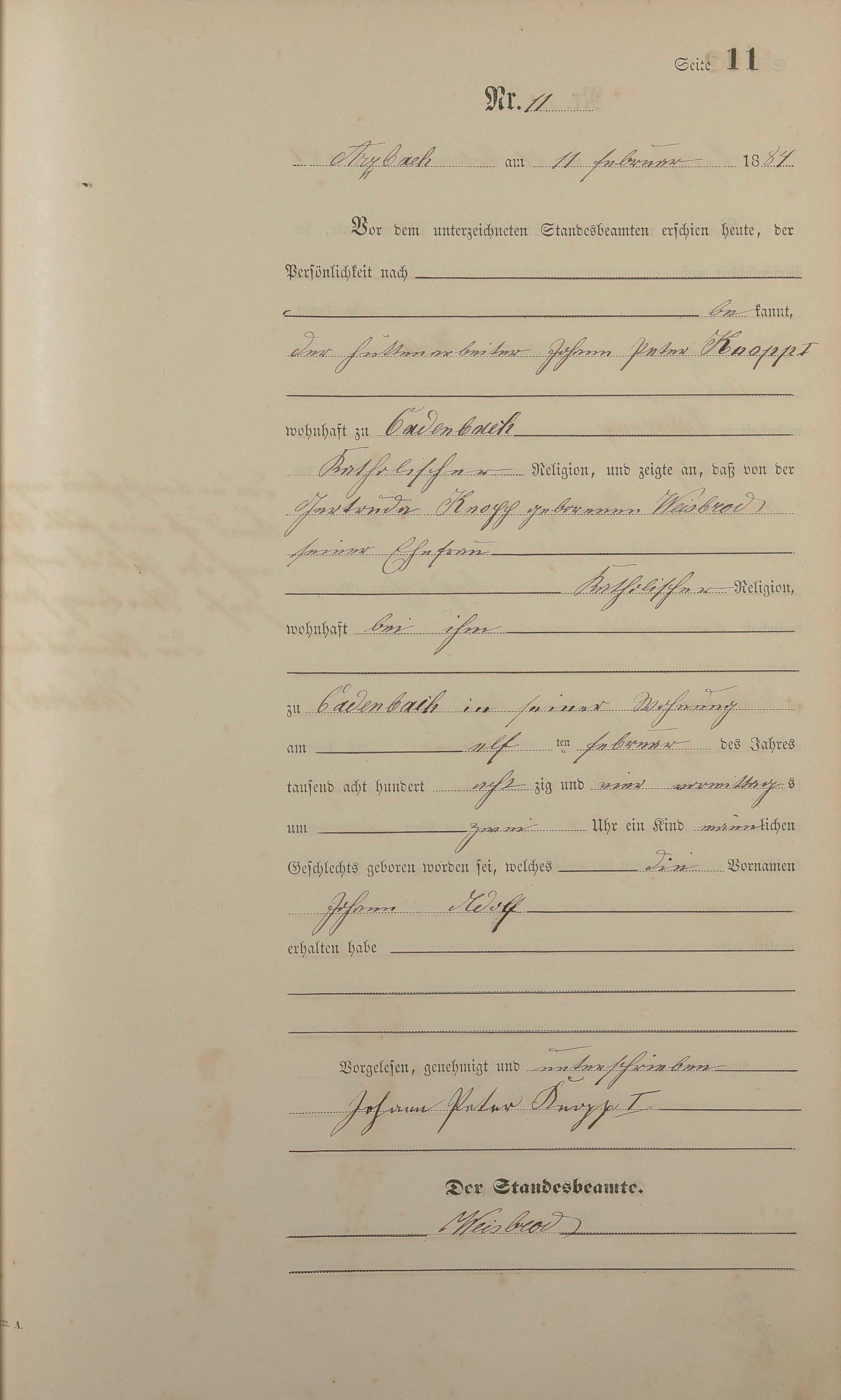 Geburtsregister 1884