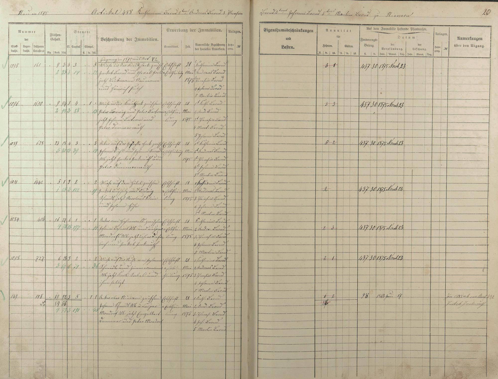1/7: Stockbuch der Gemeinde Nievern 1875-1884