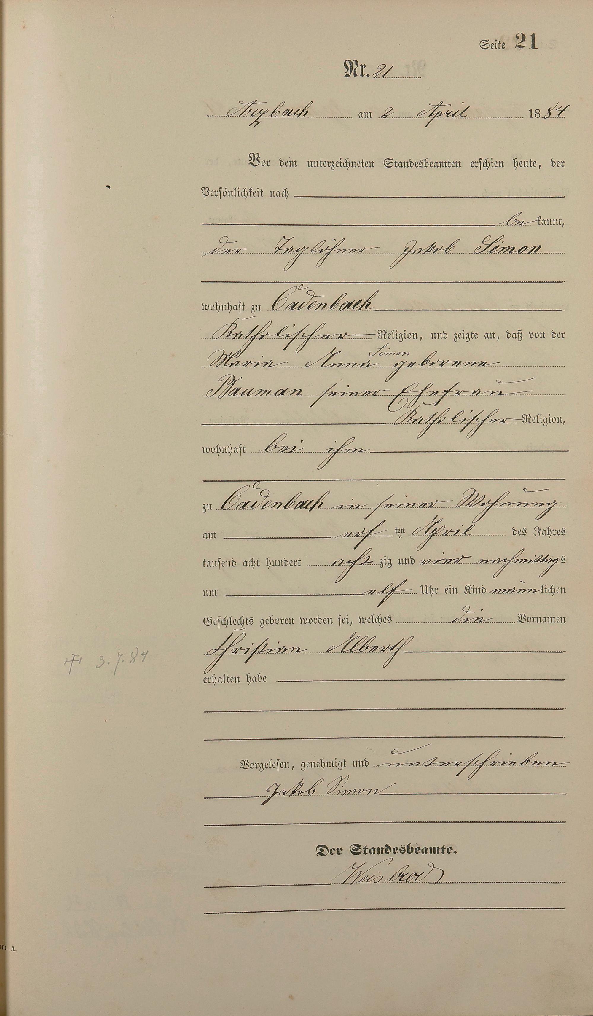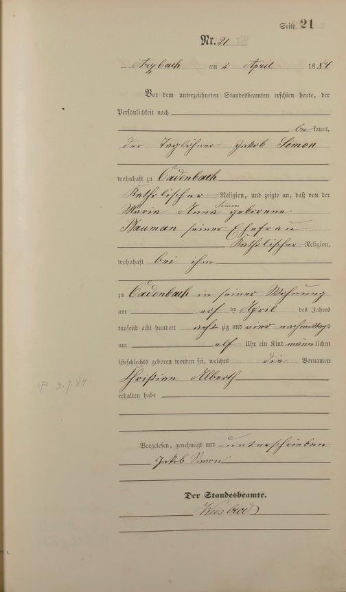 Geburtsregister 1884