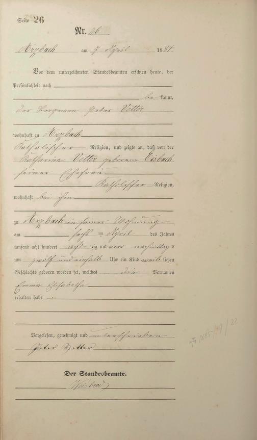 Geburtsregister 1884