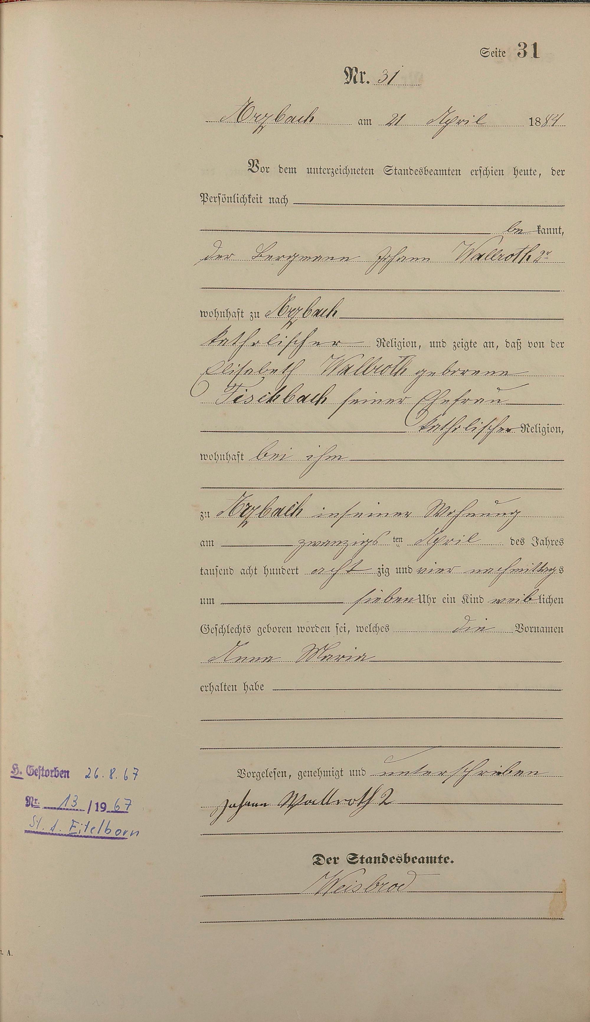 Geburtsregister 1884