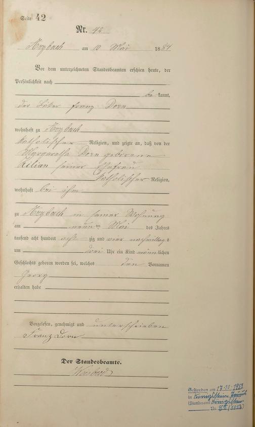 Geburtsregister 1884