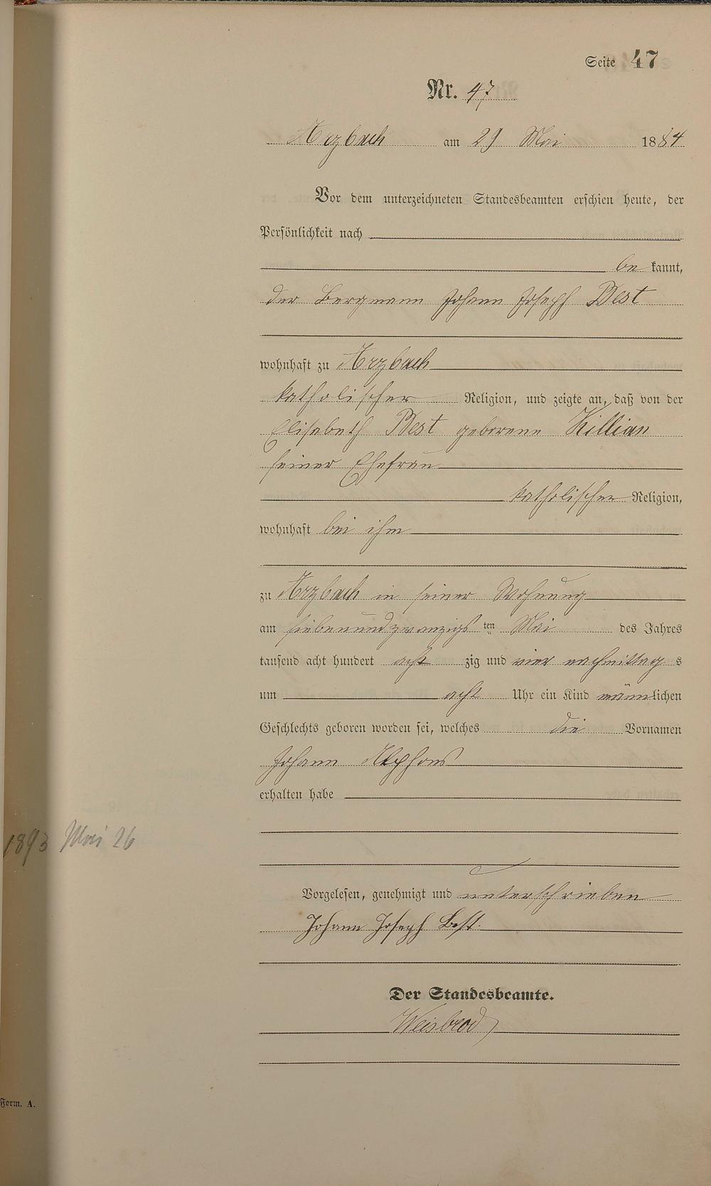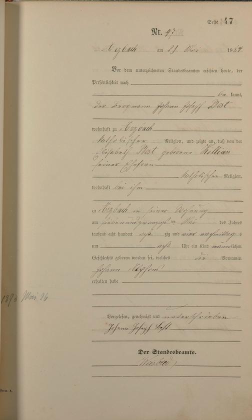 Geburtsregister 1884