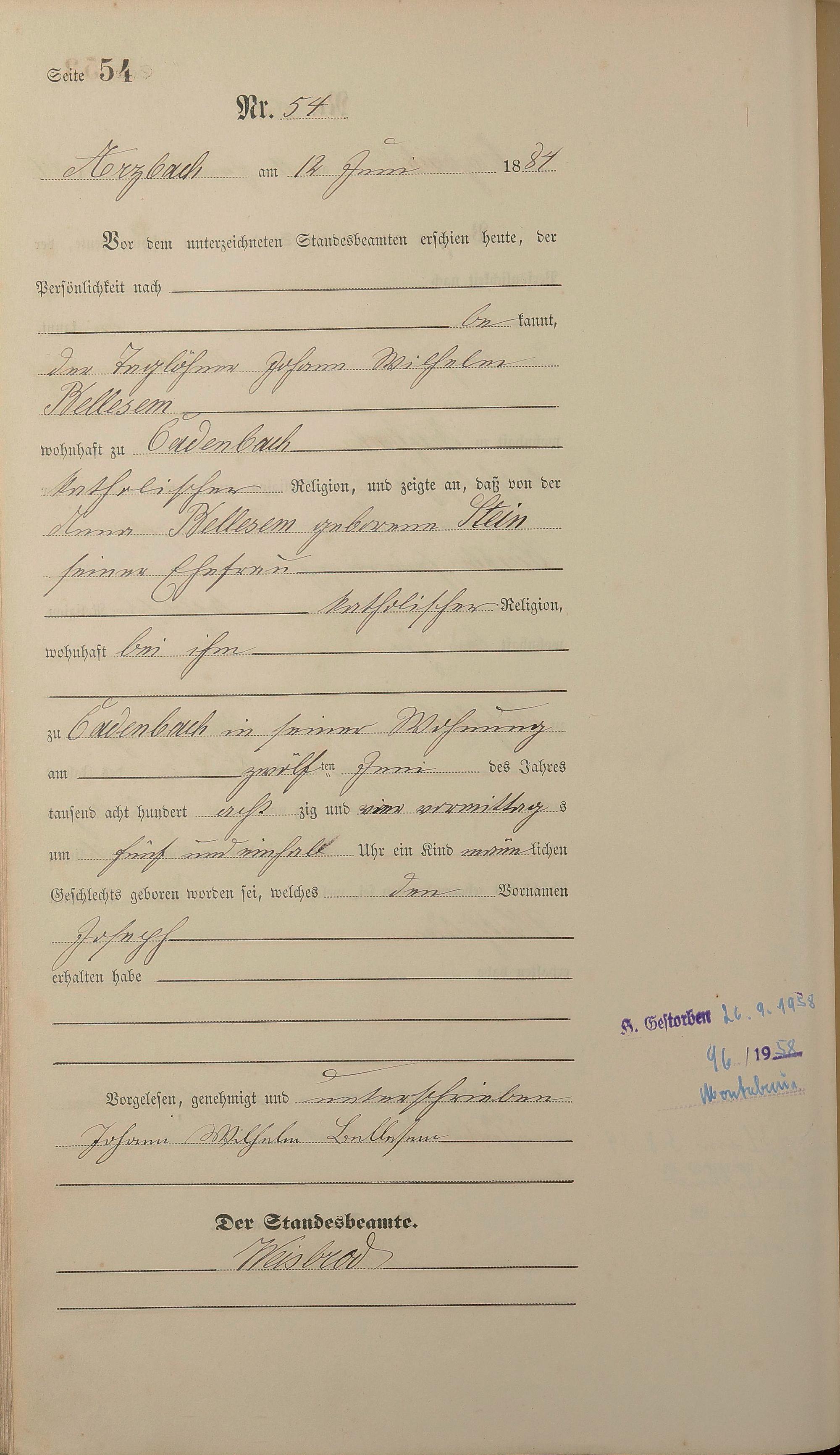 Geburtsregister 1884