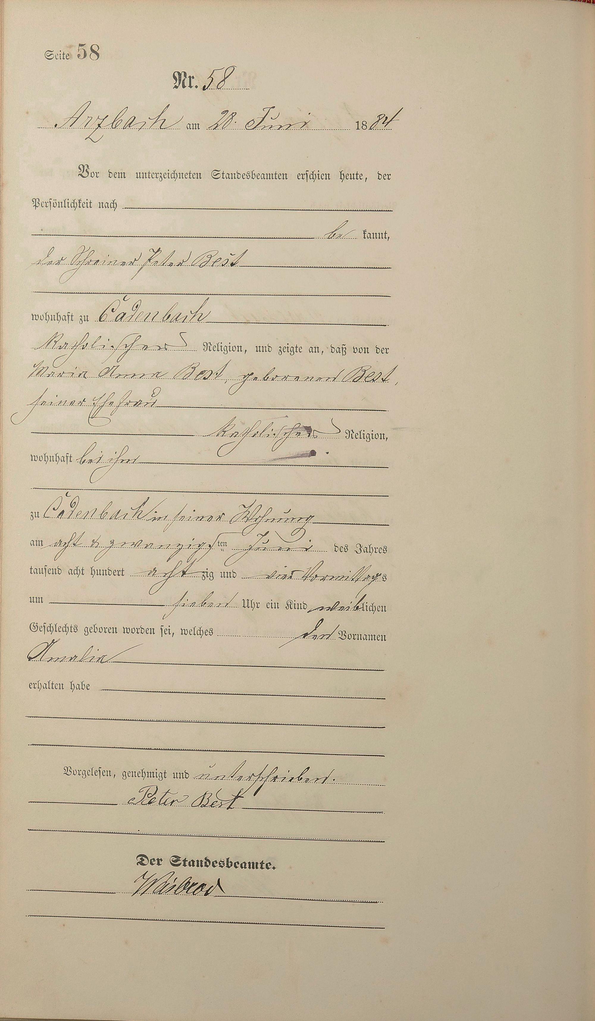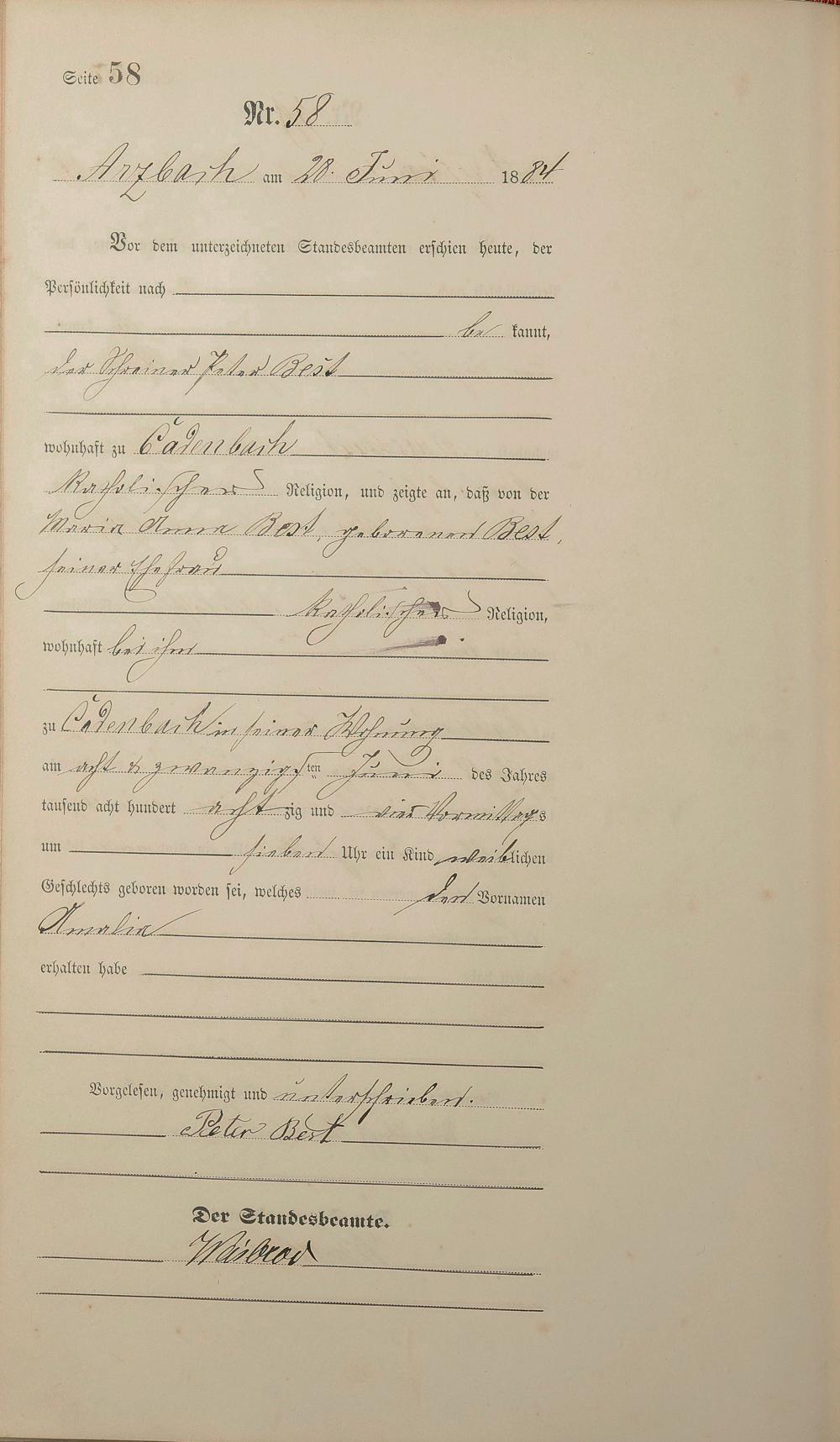 Geburtsregister 1884