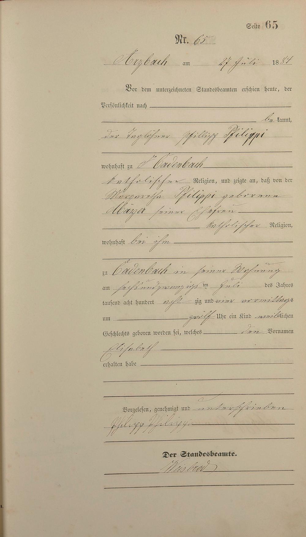 Geburtsregister 1884