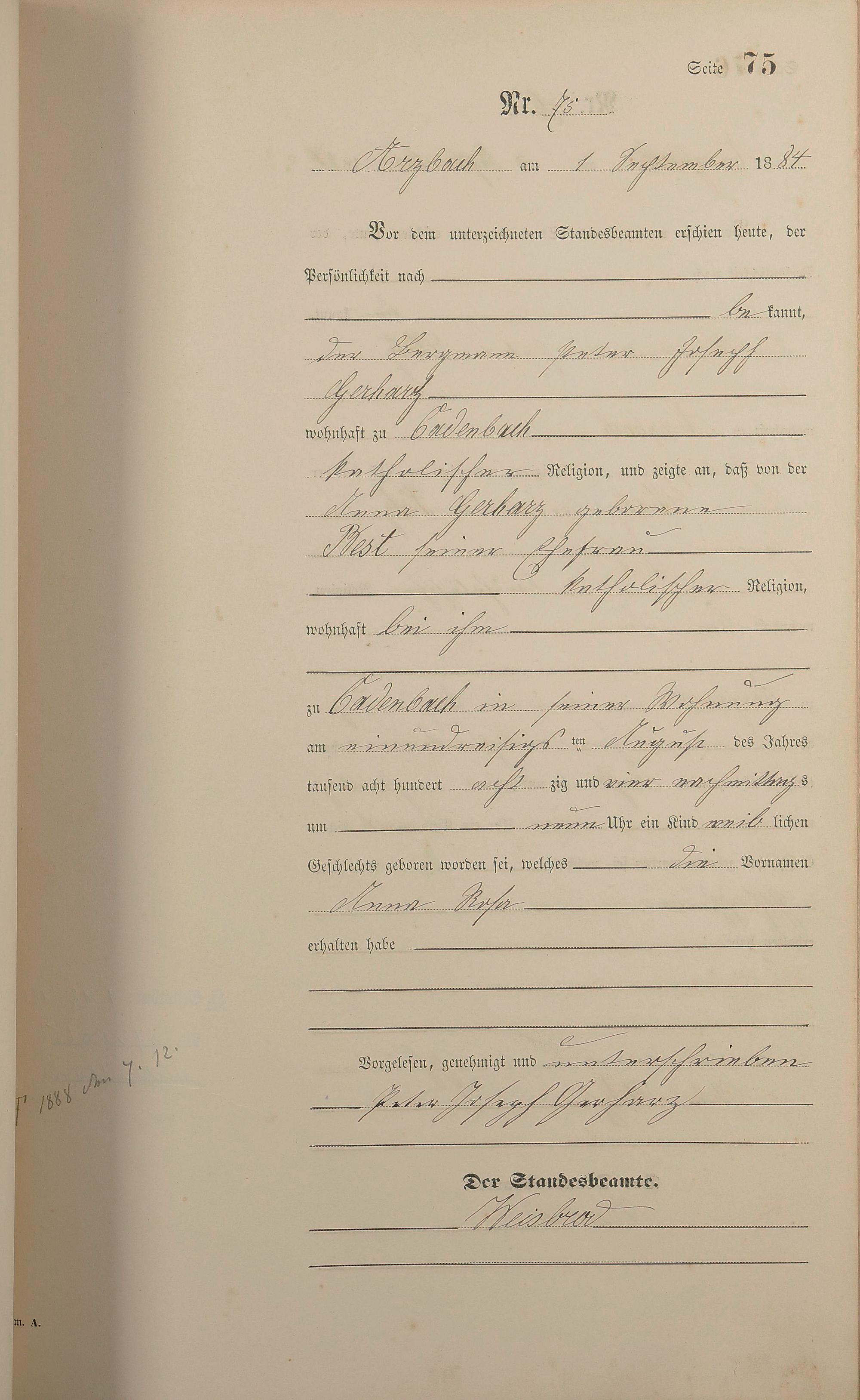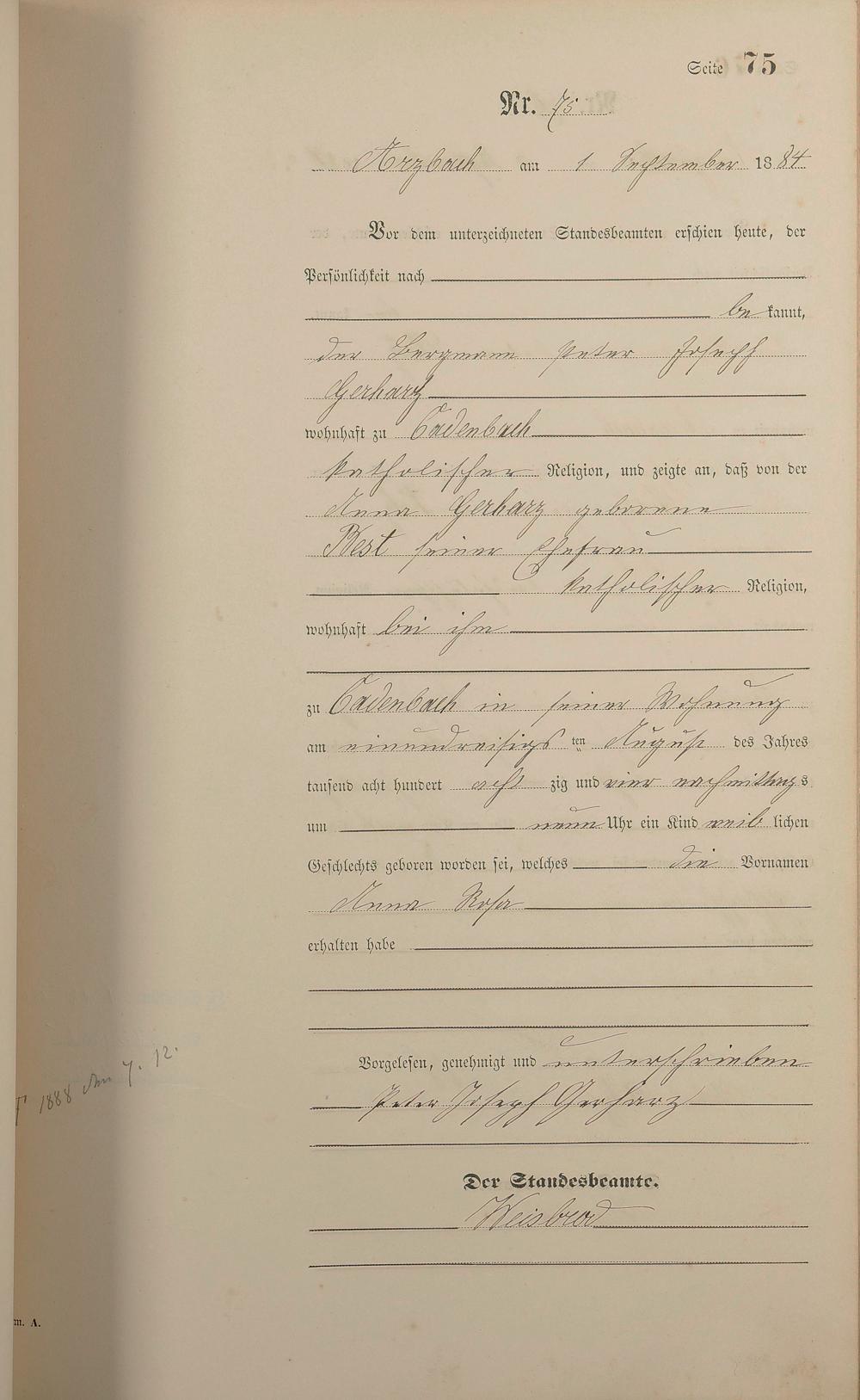 Geburtsregister 1884