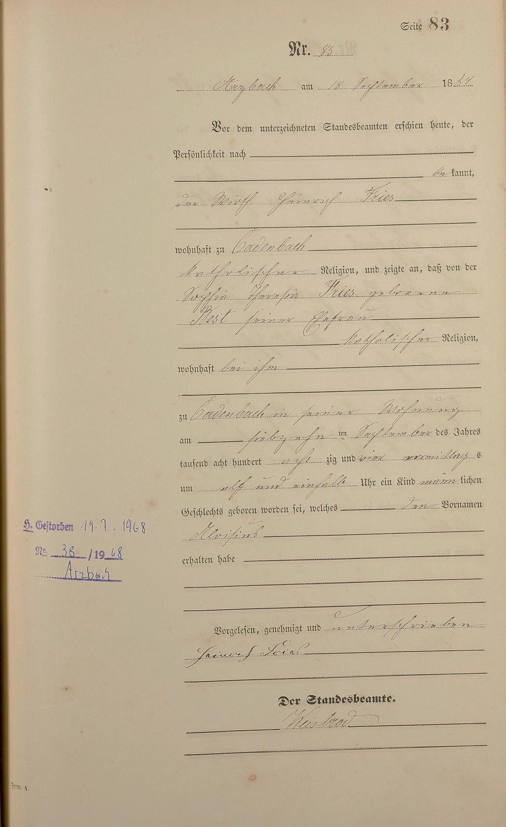Geburtsregister 1884