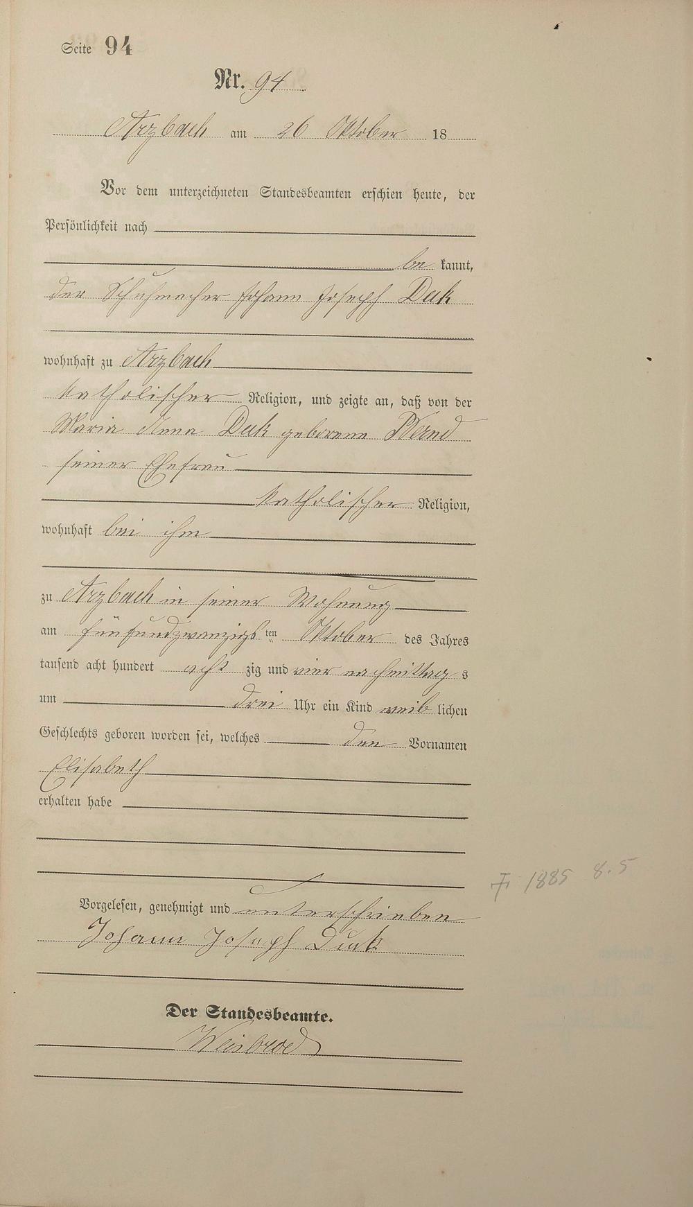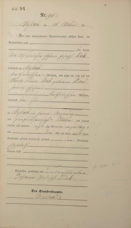 Geburtsregister 1884