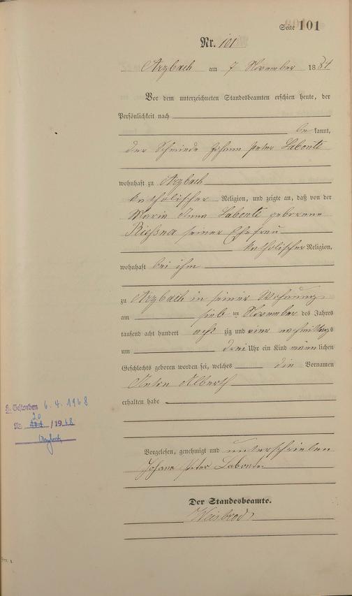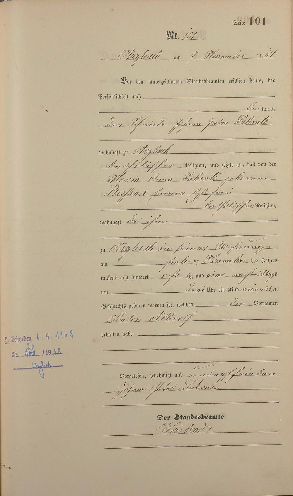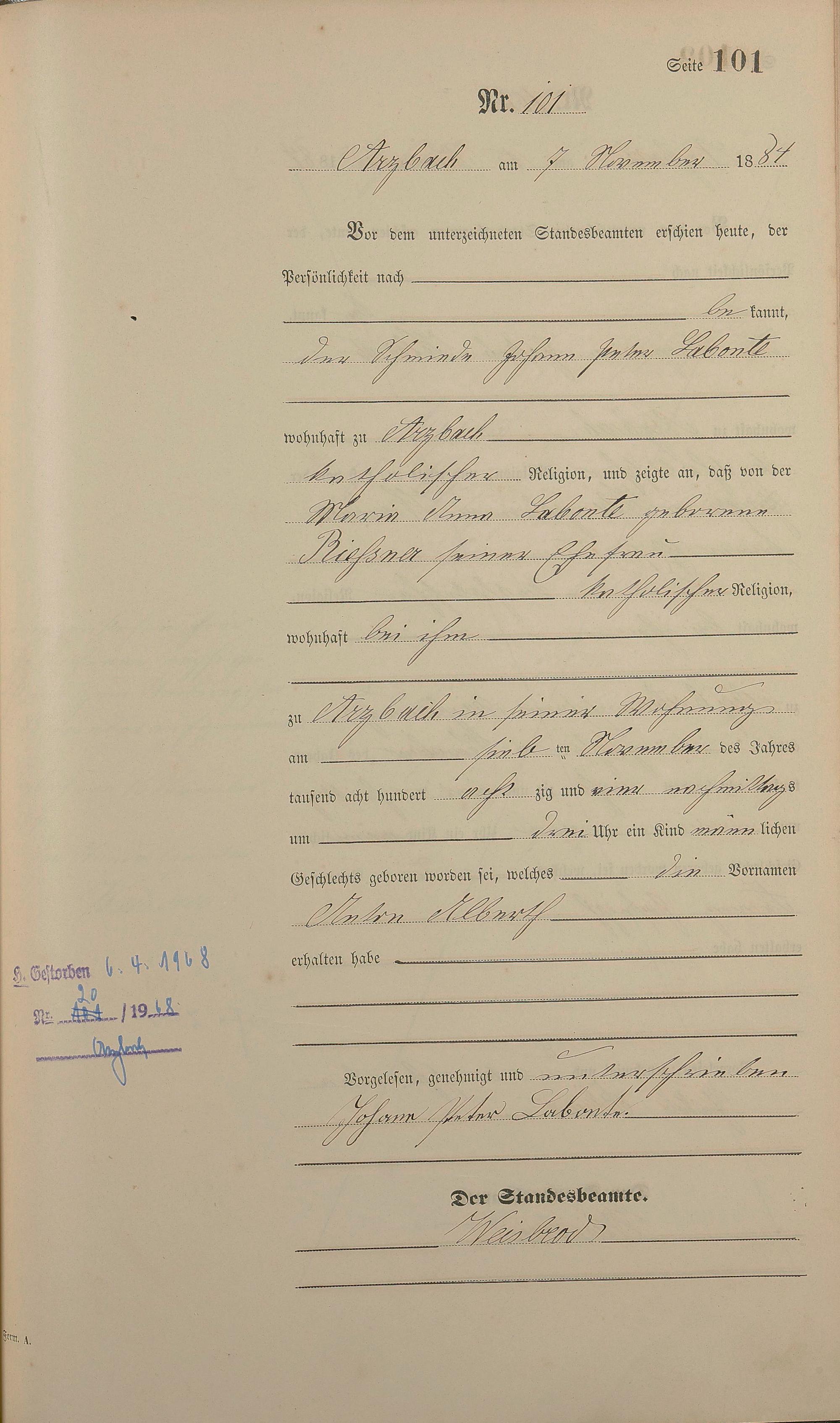 Geburtsregister 1884