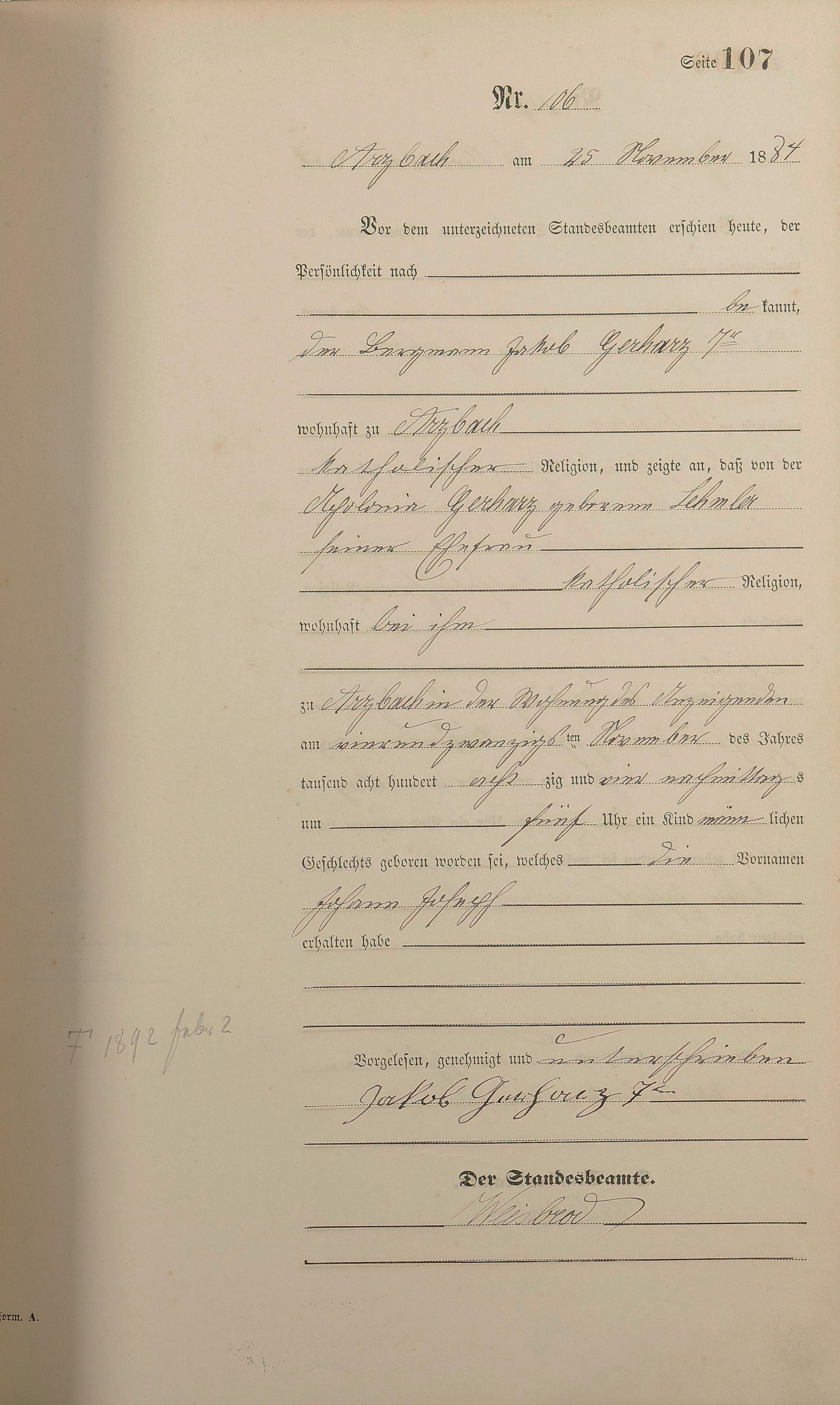 Geburtsregister 1884