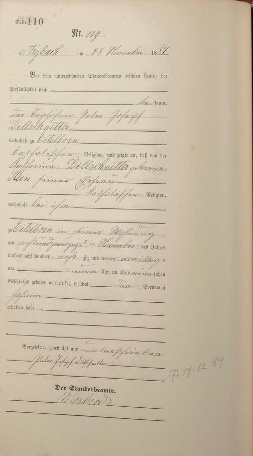 Geburtsregister 1884