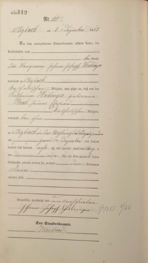Geburtsregister 1884