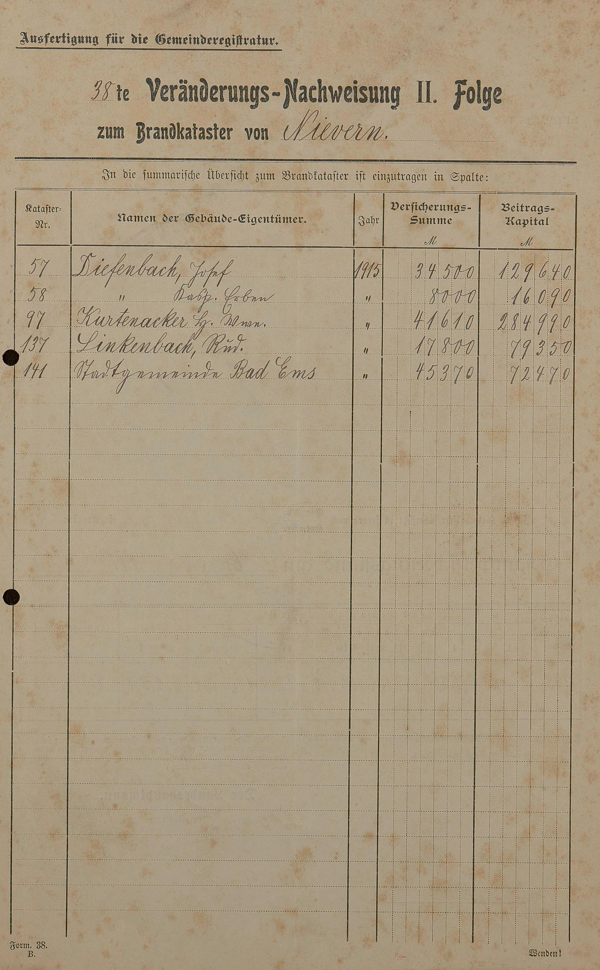Brandkataster - Veränderungsnachweise