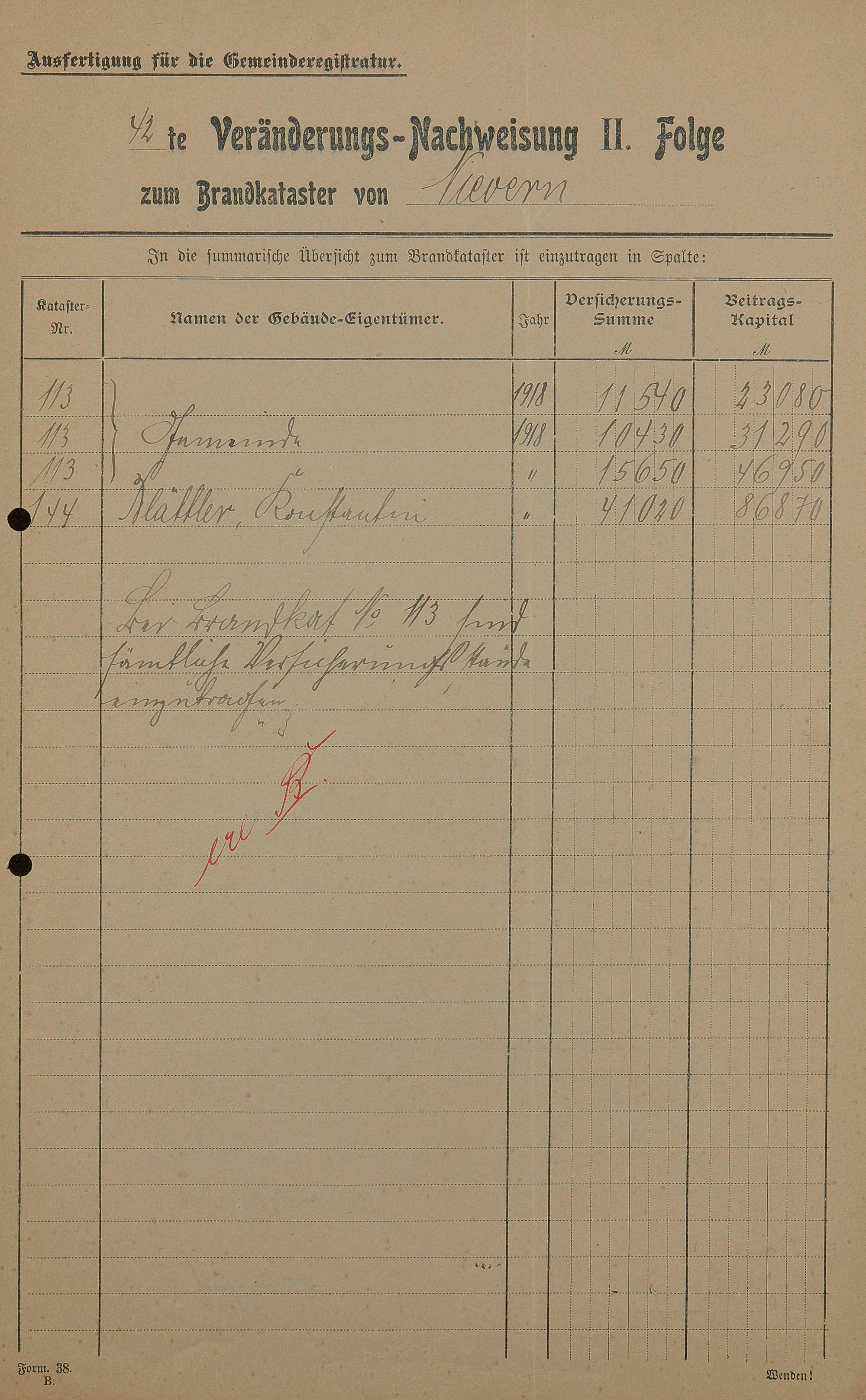 Brandkataster - Veränderungsnachweise