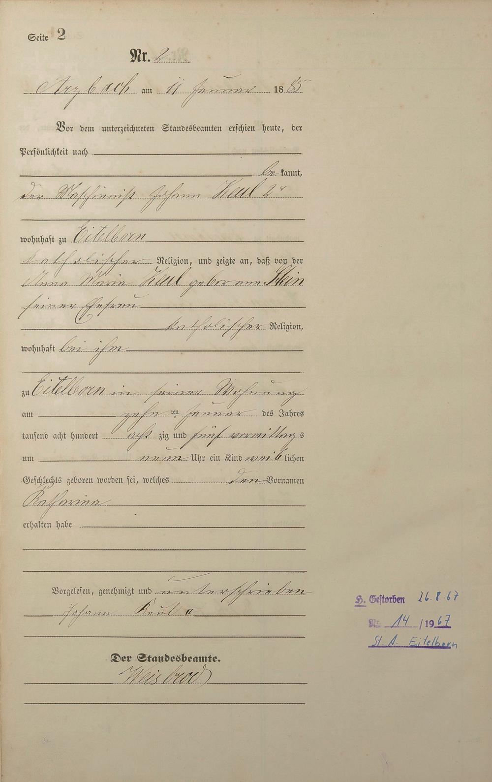 Geburtsregister 1885