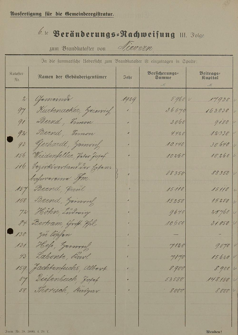 Brandkataster - Veränderungsnachweise