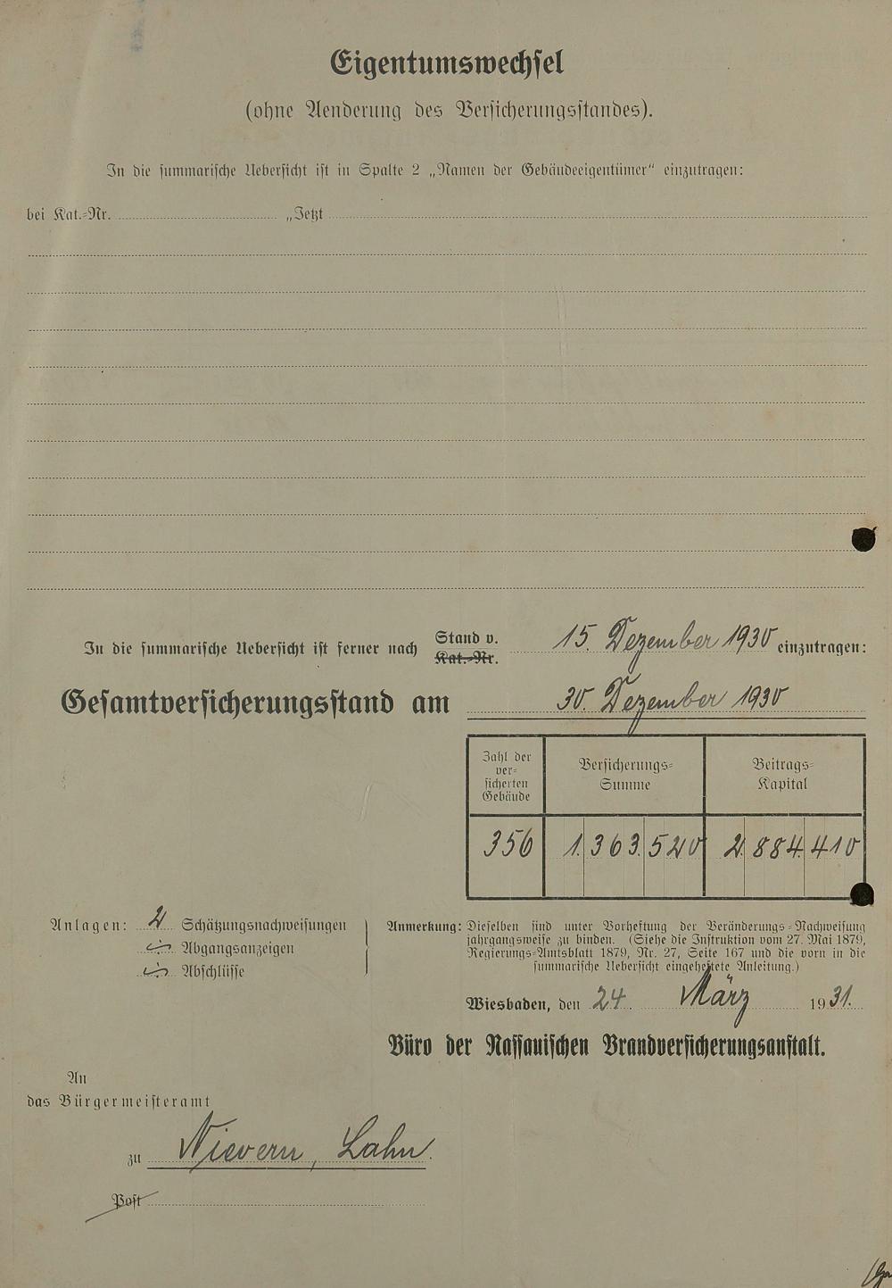 Brandkataster - Veränderungsnachweise