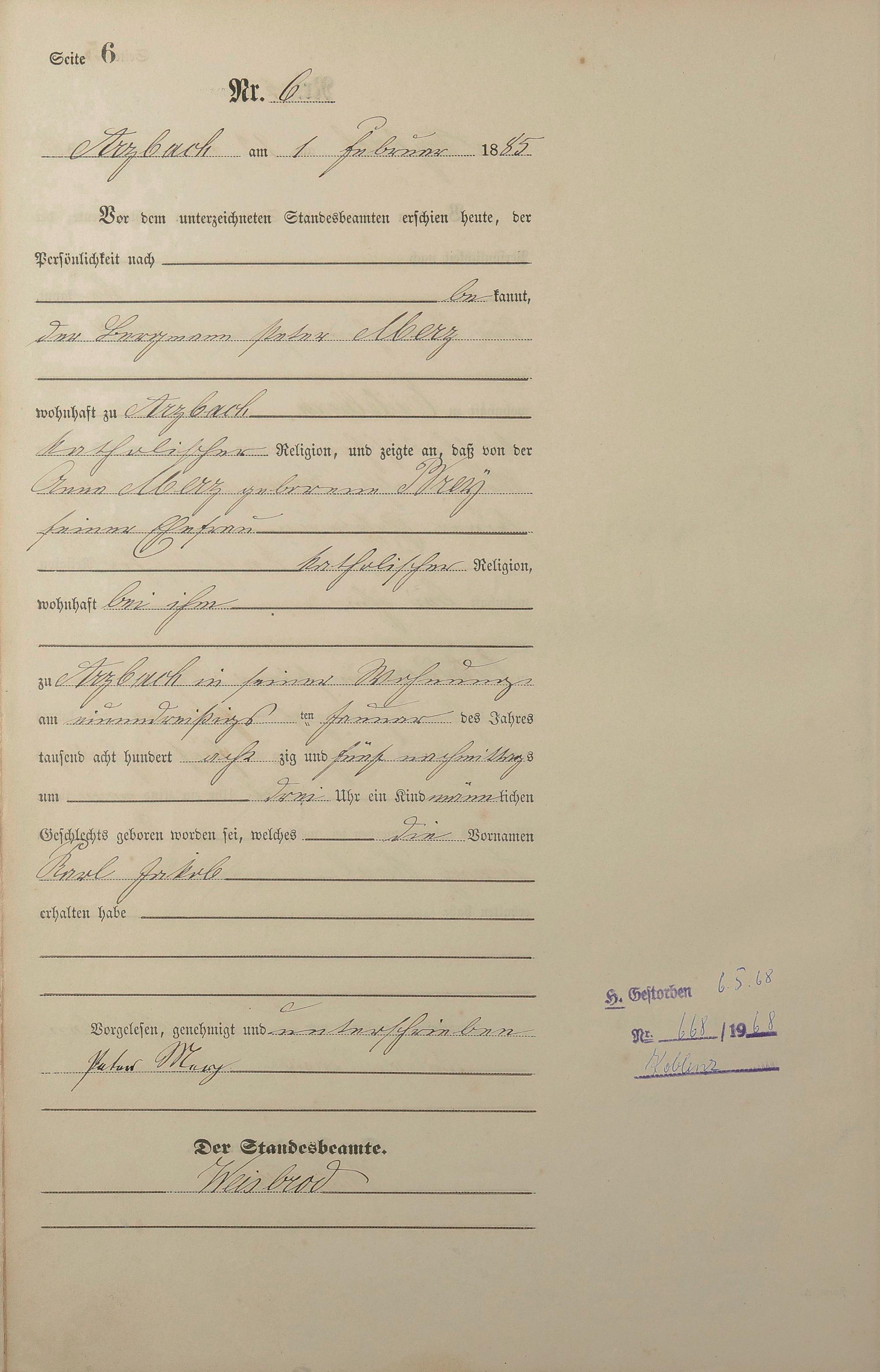 Geburtsregister 1885