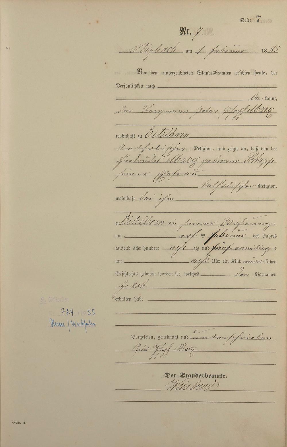 Geburtsregister 1885