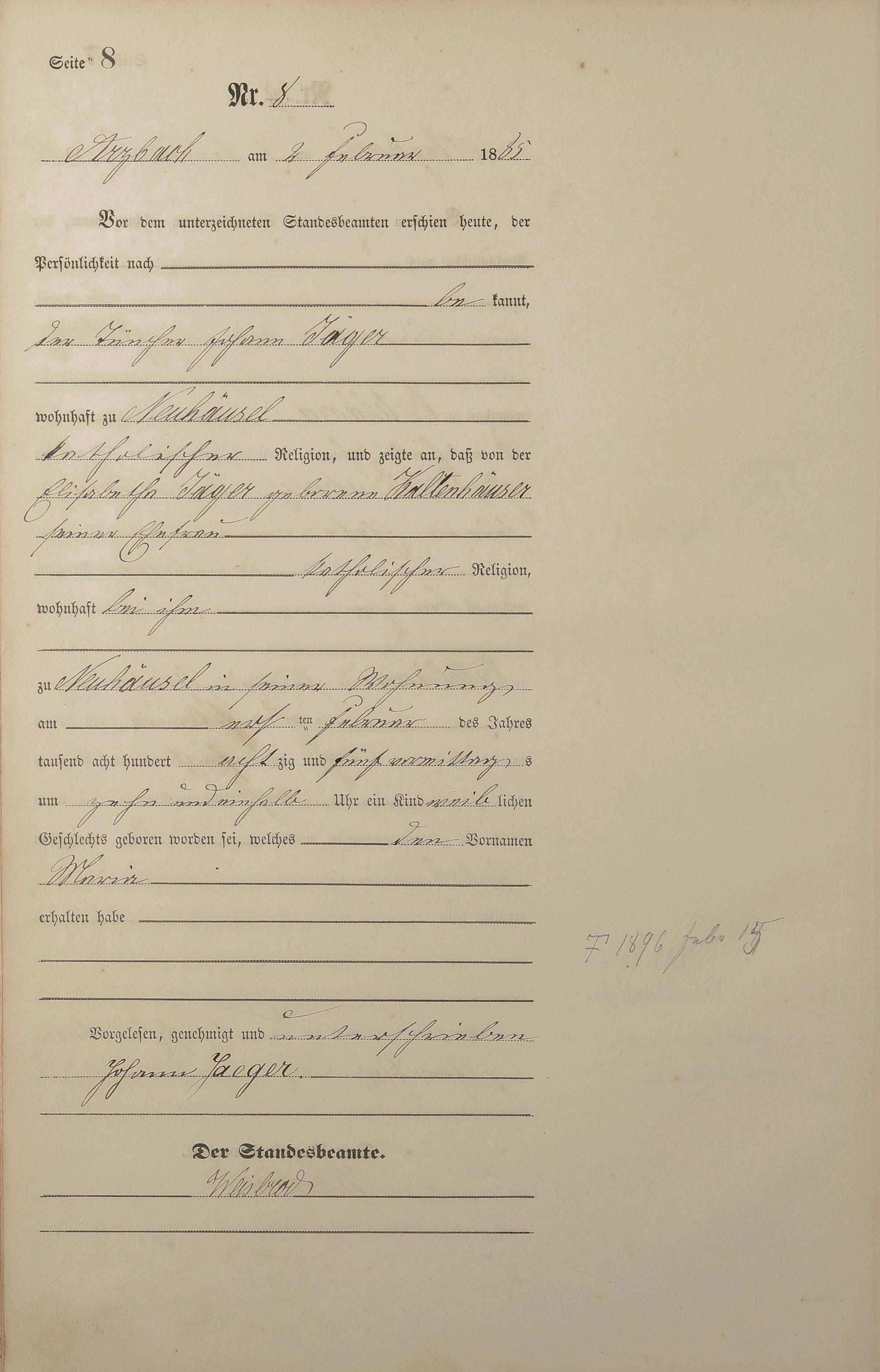 Geburtsregister 1885
