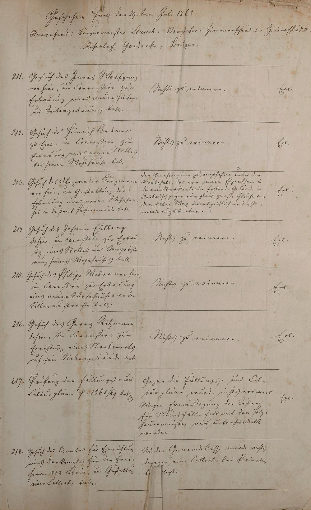 Magistratssitzungsprotokolle 29. Juli 1868 - 20. Dez. 1876