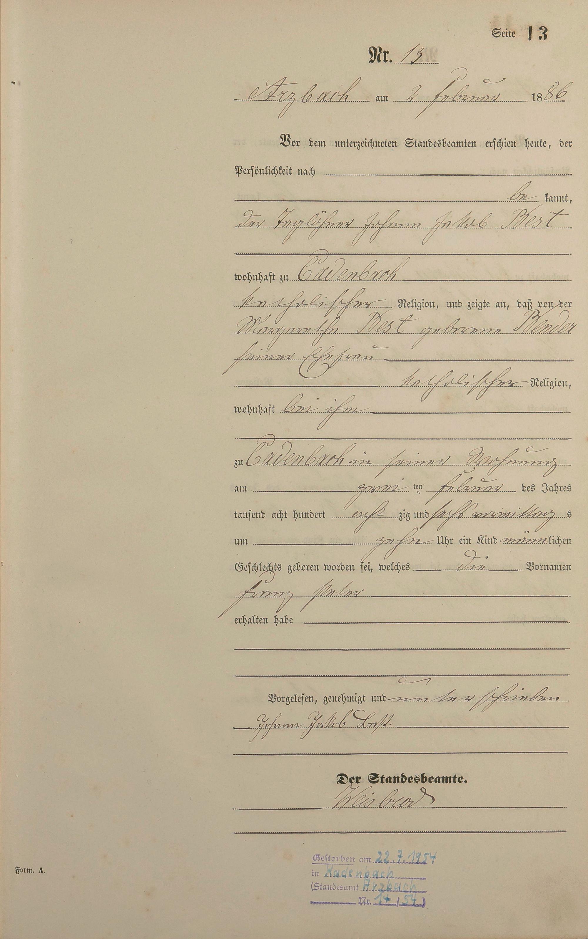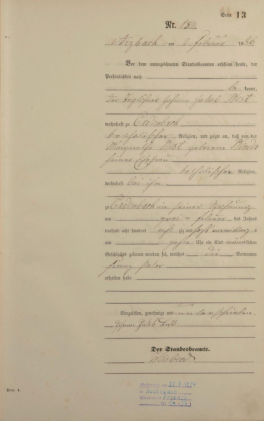 Geburtsregister 1886
