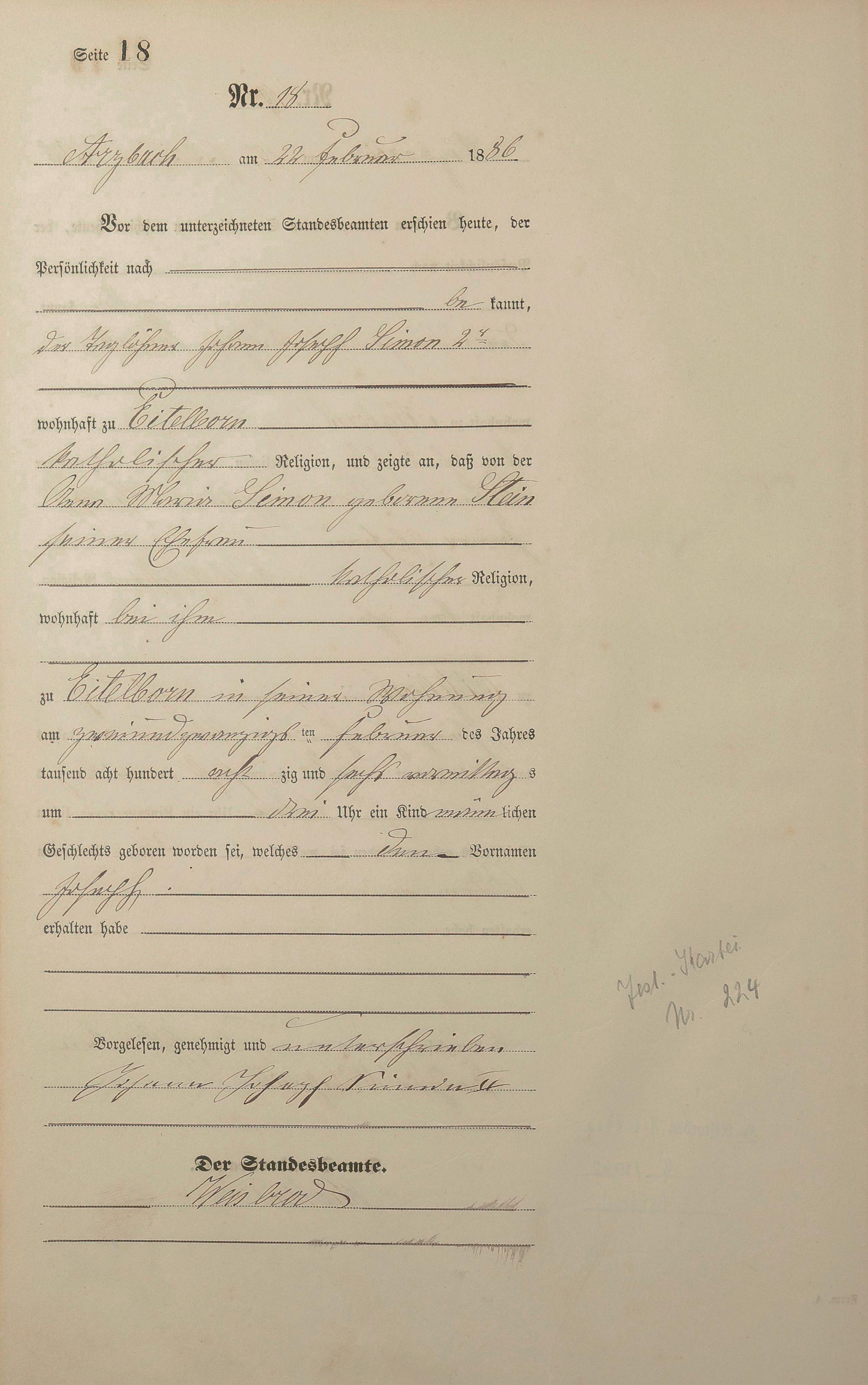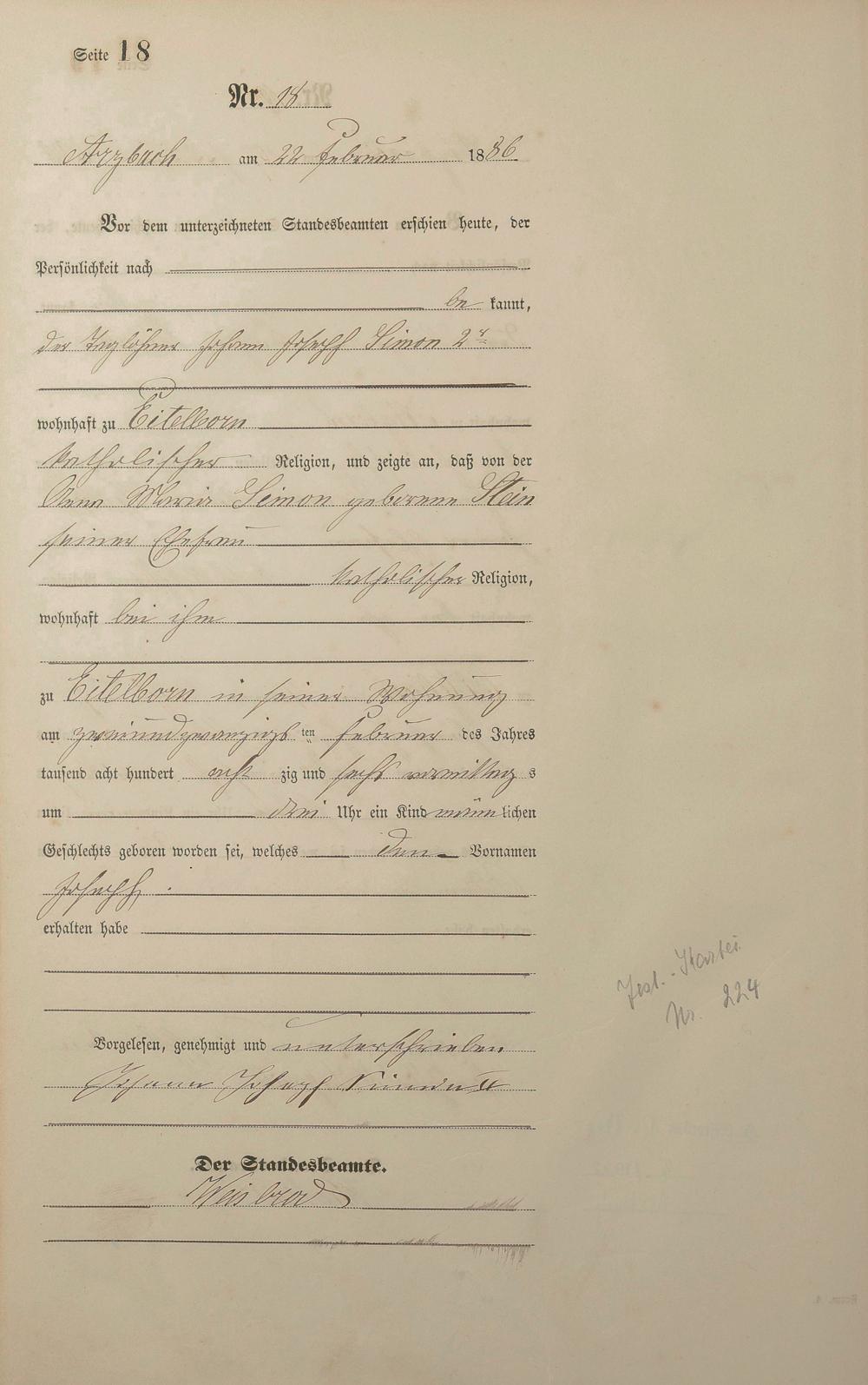 Geburtsregister 1886