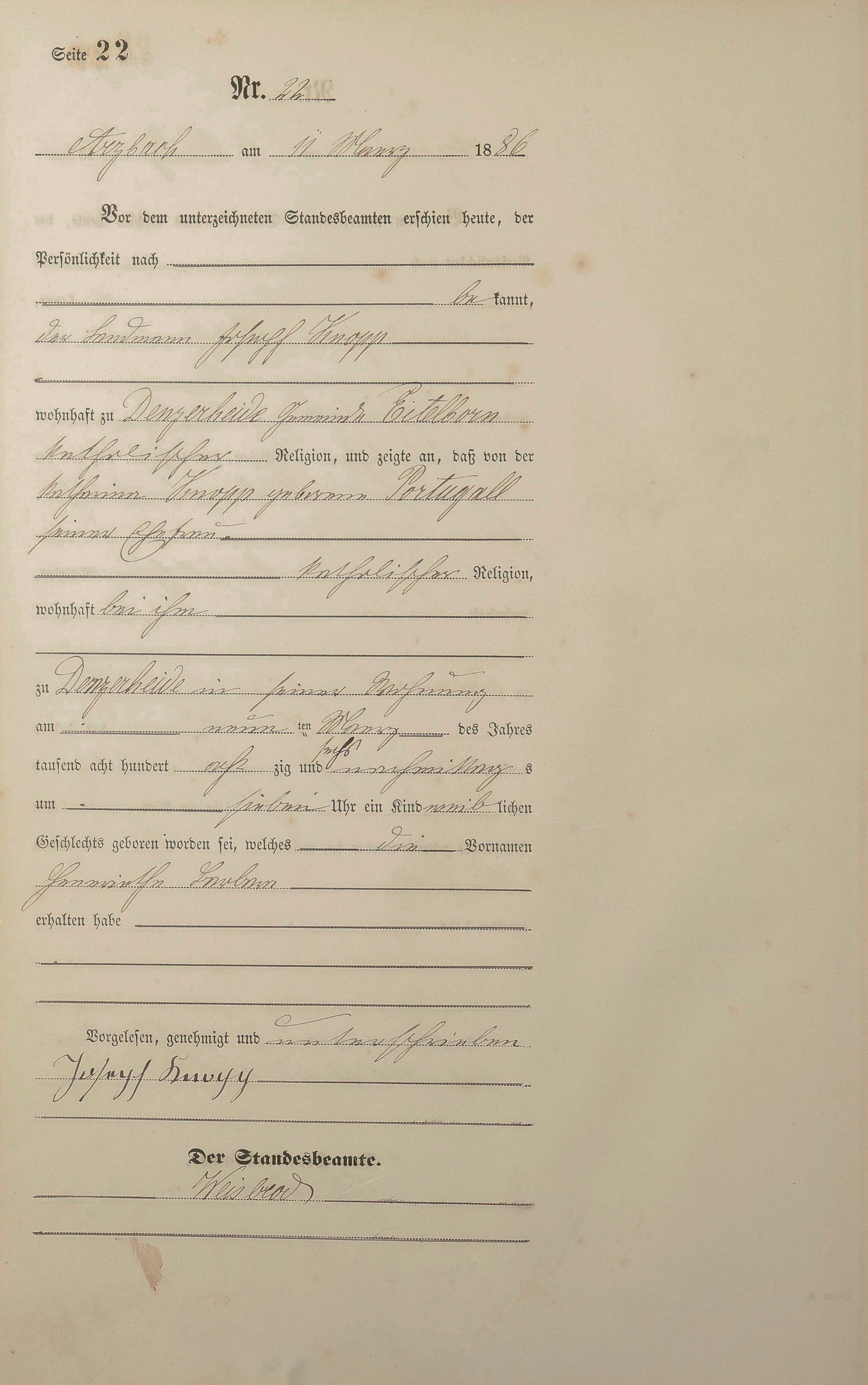 Geburtsregister 1886