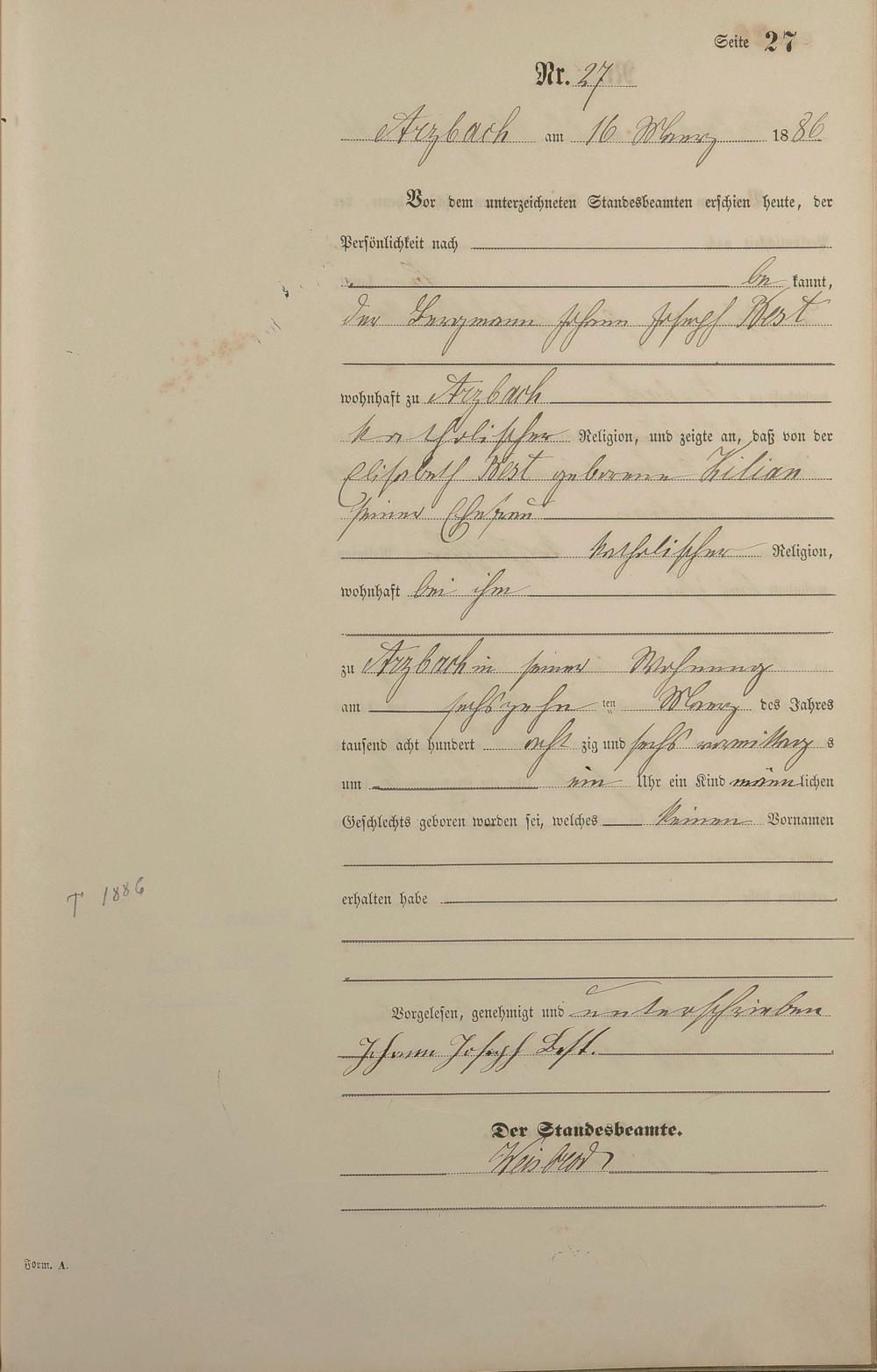 Geburtsregister 1886