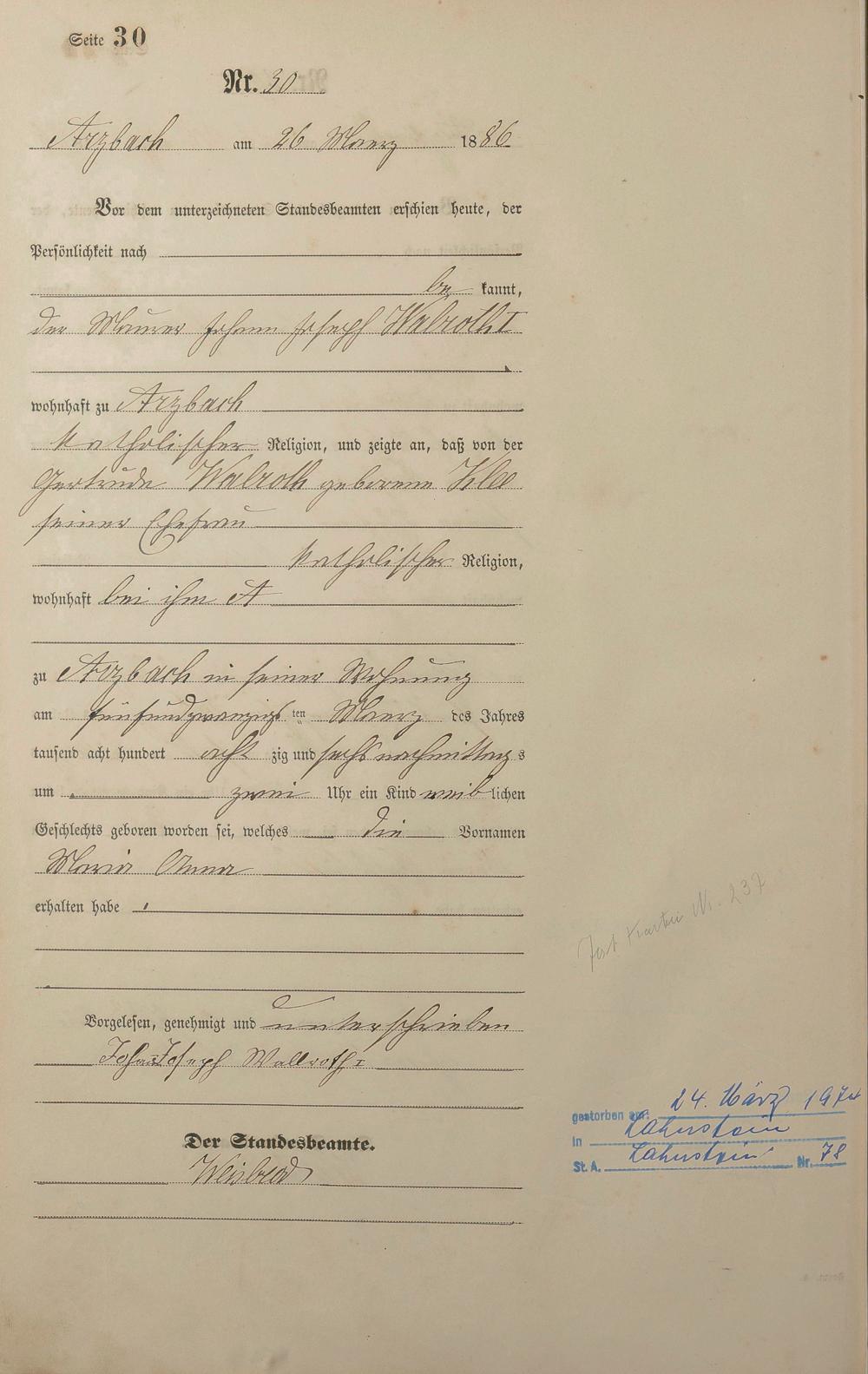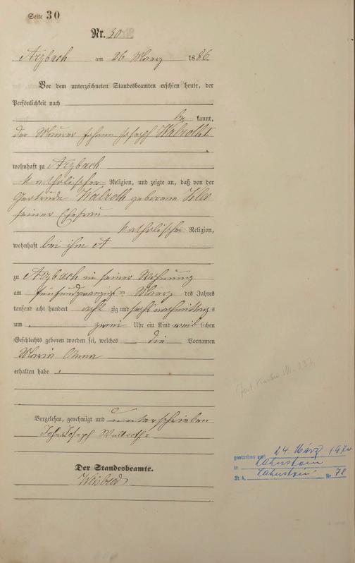 Geburtsregister 1886