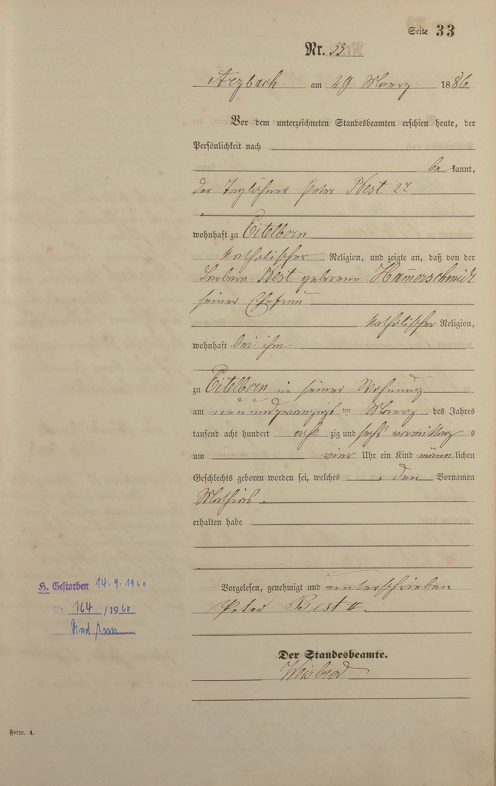 Geburtsregister 1886