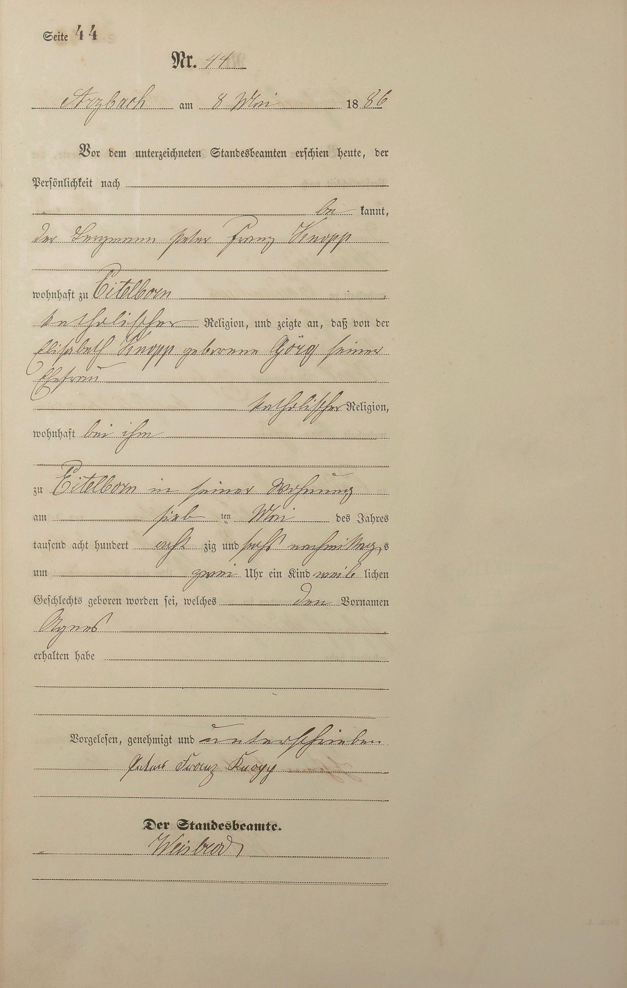 Geburtsregister 1886