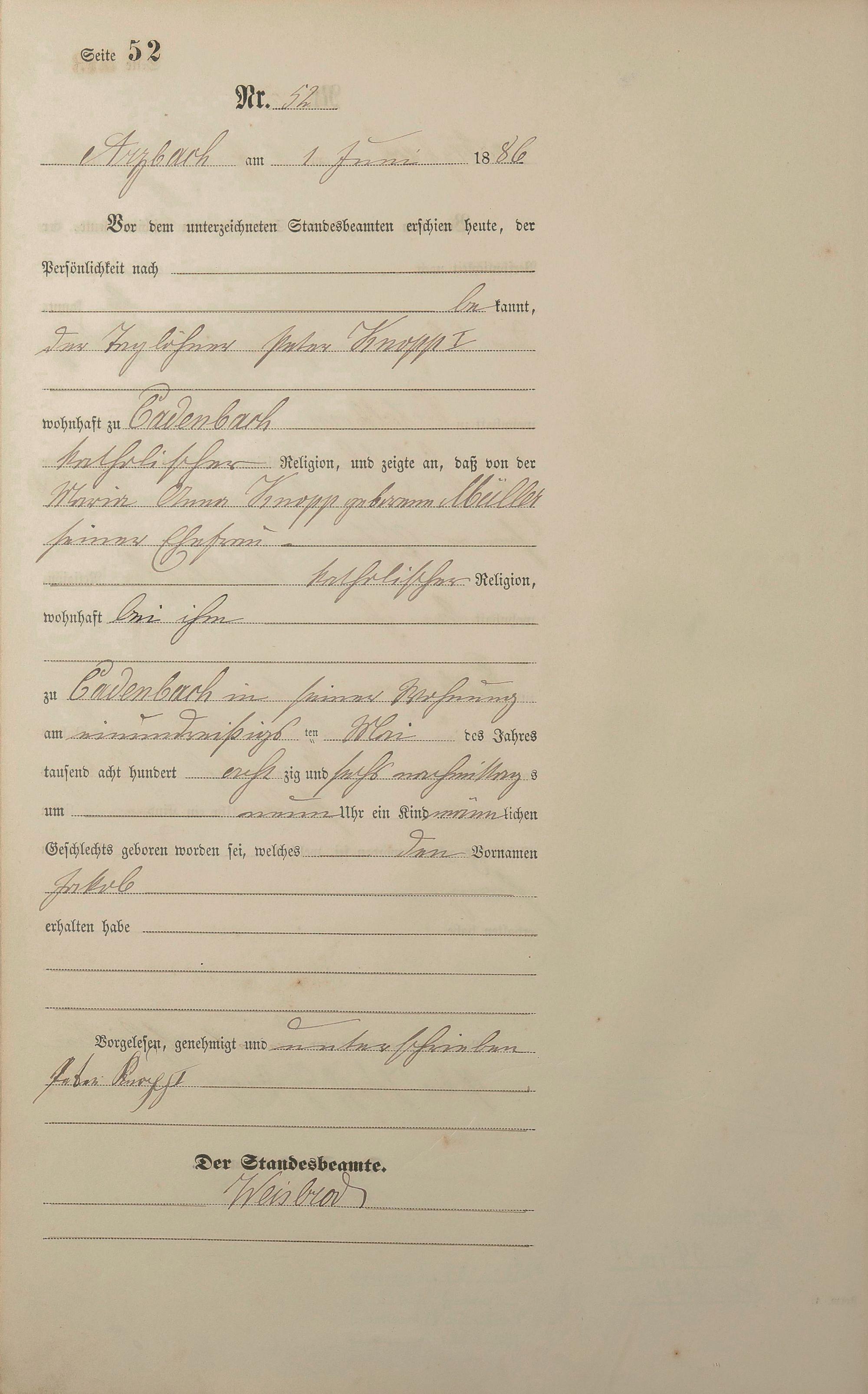 Geburtsregister 1886